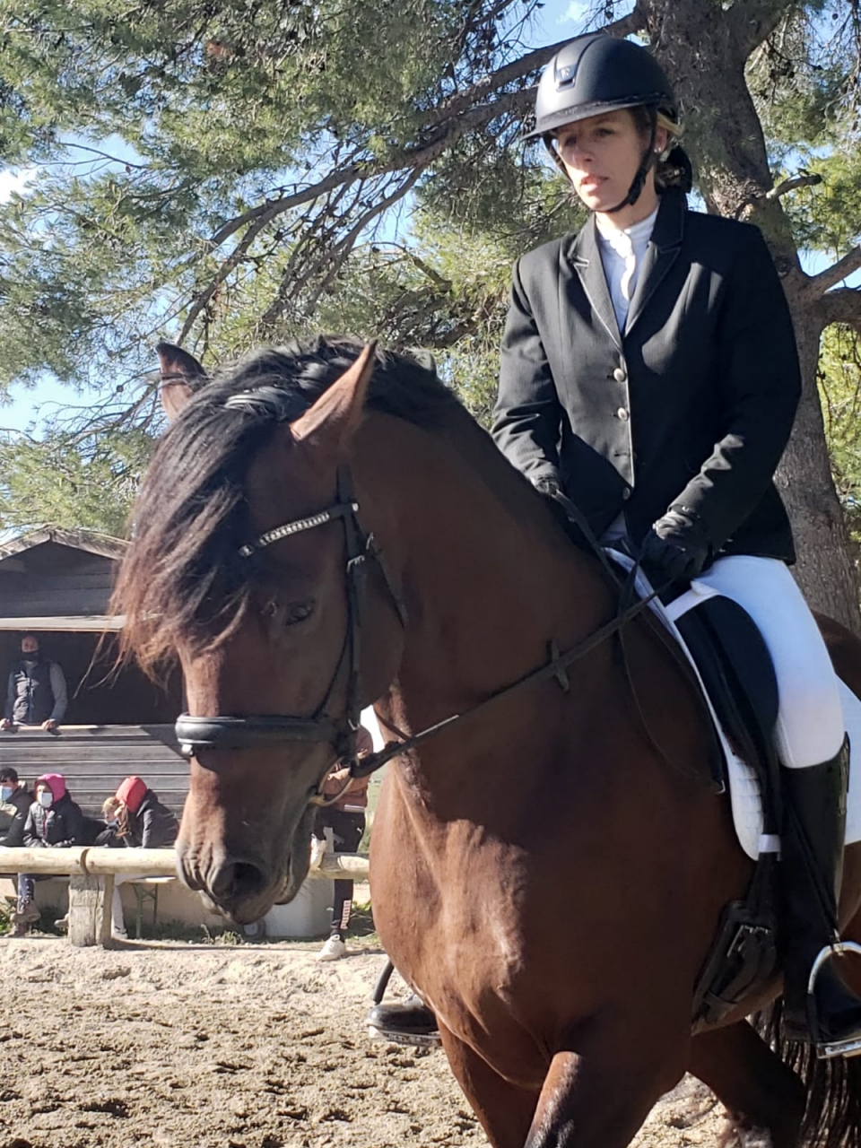 | Dire merci | Sauf qu’il y a tellemeeeeeent de vent que j’entends que dalle et surtout pas la cloche. Bref après un dialogue en mode Italiens dans le brouillard entrain de mimer la cloche je comprends que je peux partir. Je foire l’entrée, cheval creux, nez au vent normal on est orienté vers la sortie et des chevaux passent devant pour rentrer aux camions juste a ce moment là. Pas grave, je baisse mes mains, je demande le dos en me servant du coin. Là petite retivite j’avance les mains, jambes sèches « en avant mon garçon » et je récupère le coup sur le grand cercle de 15m. Il commence a venir avec moi pas trop stable mais je le récupère et je le sens fonctionner dessous donc je continue le job. Doubler dans la largueur, manque de préparation donc un peu flou. On part vers le fond de la carrière pour le second cercle avec le début de la serpentine. Je pense a ma coach « pense pas a ton tracé tu le connais mais travaille chaque foulée ». Euréka mon cerveau se remet en route et je déroule une serpentine fort correcte (9). Ma transition au pas est merdée car il choisit ce moment là pour hennir donc lache son dos. Bah c’est le métier qui rentre. Travaille au pas, plus décontracté et plus régulier, moins flottant dans le tracé sauf que cheval très distrait donc pour allonger tintin. Je choisis volontairement de pas le violer à ce moment là et de le remettre dans les jambes gentiment pour pas bousculer mon départ au galop. Galop a gauche, il vrille la nuque bordel, j’aurais du plus le descendre. Je récupère pas si mal sur la transition galop/trot. En fait en vérité je suis déjà hyper satisfaite qu’il soit parti droit, sur le bon pied, et qu’il soit devant mes jambes en ligne droite sans débrayer que je suis un peu en apesanteur mentale. Je soigne bien mon changement de main au trot : on s’enroule pas mon garçon. A l’autre main je crois que le galop est un peu mieux meme si il y a des émotions sur la piste. Le doublé final est bien mieux que l’entrée normal je soigne bien plus mon entrée, je pousse pas dans la ligne droite car je veux préparer ma transition au pas. Qui d’ailleurs est un peu heurtée mais pas si mal. Je finis ravie d’avoir fini au moins et très fière de lui (ça tombe bien c’est mon deuxième mot). Commentaire laconique de ma coach en sortant (c’était bien monté, je vais me coucher maintenant lol). Je repars au camion, il est bien plus calme, ça calme une détente et une reprise et là en m’en occupant ma cops vient vers moi « tu as gagné ton épreuve ». Whaaaaat ? je pensais finir vers 61/62% Bref, je dis a mon mec, on embarque en vitesse et je file chercher mon protocole. Sauf que…. |