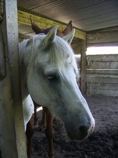 | Dire merci | Kidjy fait partie des vieux chevaux du forum du moins, elle y a eu son post il y a 13 ans quand je l'ai achetée. Elle est toujours à mes côtés, en retraite à la maison. Elle a 23 ans, elle vieillit pas si mal. Elle n'est plus montée depuis 3 ou 4 ans, elle a eu un éclis d'os à un antérieur, ça a été la fin. Elle n'en garde pas de séquelle "au repos", elle se déplace normalement mais montée elle boitait au bout de 20 minutes. La vieillesse l'a transformée en mamie câline, elle ne l'était pas du tout avant. |