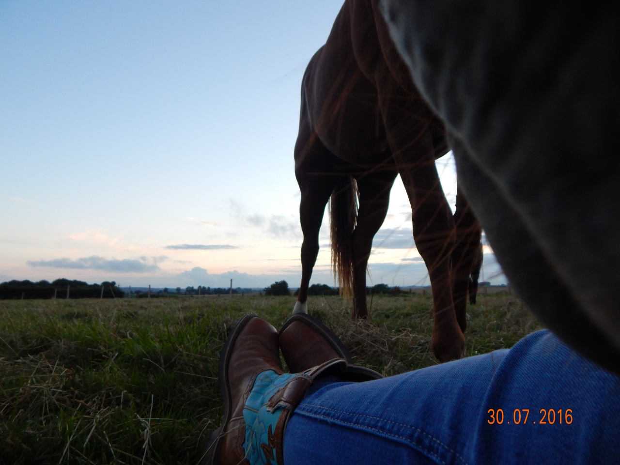 DéconnectéDire merci | salut voisine! comment je reconnais notre "superbe" région nan c'est pas si mal au moins les prés restent verts même en août!je suis à à peine 20min de ton ranch et ma foi tout ça fait envie surtout que le milieu agricole je connais bien aussi...ça fait un bail que je n'ai pas posé mon noble fessier sur un cheval, et pourtant j'en ai 4 en pleine force de l'âge mais manque le temps et la motivation, à part l'extérieur plus rien ne me dis... je ne dis pas que je ne tenterai pas le western un de ces jours, j'aime la technique et la décontraction. superbe ta Cookie, un cul de ouf |
