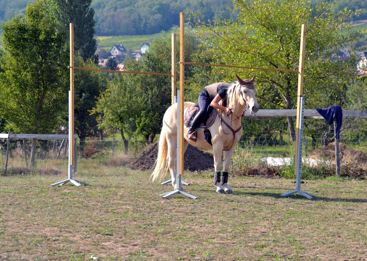 | Dire merci | Deuxième jour : il avait l'air d'avoir passé une nuit assez calme. Matinée à nouveau théorique, et l'aprem j'ai demandé à faire partie du groupe qui travaille sur les sautants pour valider ce qui a été vu la veille. Il était plus que top, mieux que ce que j'aurais pu espérer ! J'ai pu faire ma détente aux 3 allures en autonomie sur le terrain, faire les butes au pas et au trot, améliorer les départs au galop, et améliorer les courbes au galop. Ensuite on nous a demandé de venir au trot dans des bordures maraichères devant le contre haut, il avait tout capté c'était nickel. Ensuite pareil au galop, une fois qu'il a compris qu'il fallait galoper tourner passer dans les barres et sauter, pareil c'était ok trop facile ! On est revenu sur le contre bas au trot avec bordure maraichère à la réception, c'était compris aussi, on a fini par descendre au trot et partir au galop avant les bordures. Ensuite on à enchainé 2 contres hauts à 2 foulées avec les bordures avant, puis 2 contres bas à 2 foulées avec les bordures après. Vraiment au top ce petit loup !! En plus il est hyper confortable, avec un bon coup de saut, vraiment généreux, et purée qu'est-ce qu'il apprend vite ! On a embarqué en 2 minutes, ils n'ont pas bougé sur le retour, ils étaient cuits Il a eu droit au samedi de repos au paddock dans le centre équestre où je travail, pour être sur place pour le stage du dimanche ![]() ![]() ![]() ![]() ![]() ![]() ![]() J'ai plein de petites vidéos, je vais tenter de faire un montage et de le poster , je vous garanti rien lol Et je vous raconte le stage du dimanche dans la soirée |