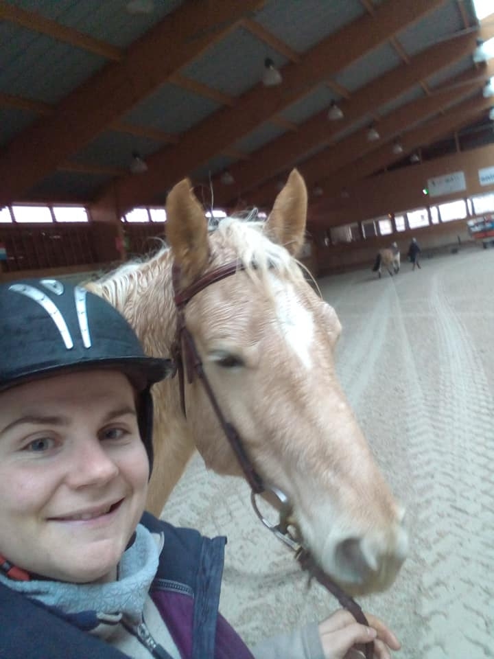 | Dire merci | Hello toutes et tous ! Pas de news ces derniers temps, nous n'avons pas fait grand chose ... Suite au stage avec Ken Poste, j'ai laissé Gé un peu tranquille. Nous avons fait 2 ou 3 petits trotting où il était exemplaire. Je l'ai ramené au club pour quelques jours, car j'avais un essai de selle avec GBS sellerie, j'ai trouvé une selle qui me plait beaucoup.. mais malheureusement avec le re confinement ce n'est pas possible d'envisager l'achat d'une selle neuve tout de suite. J'ai profité de l'avoir au club pour faire une petite séance d'obstacle où il était top !! Mon boss en à profité pour le monter 5 min et m'a dit qu'il est sympa, très puissant, mais avec un peu de caractère oui oui ça je sais hihihi, mais globalement il est mignon.Là avec le confinement, étant donné qu'il est en prairie chez moi, et que je n'ai pas de carrière on à rien fait. J'ai utilisé mon temps libre pour faire mes clôtures, débroussailler et tout préparer pour l'hiver. On a fait une petit balade en main tout seul, ou il a été sage, je ne sors pas beaucoup seule avec lui, il faudrait que je m'y mette plus souvent pour préparer les sorties seuls en selle. Et hier petite séance de longe, où on a travaillé les transitions et variation d'amplitude, ainsi que son incurvation et équilibre, qu'il se tienne un peu. Au début je devais l'avoir très proche de moi pour pouvoir agir avec mon stick sur son épaule, mais ensuite il à bien compris et j'ai pu le faire sur un grand cercle. Aah et il a super compris les déplacements latéraux par aspiration, tellement bien compris qu'il le fait même quand je ne lui demande pas hihihi. Sinon il kiffe sa vie de poney boueux d'hiver avec les copains, il trouve des petites bétises mignonnes à faire, comme renverser les brouettes pleines de fumier, ouvrir la porte de la grainerie/sellerie, aller mettre ses sabots dans les cendres chaudes du reste du feu qui avait été fait après une grosse cession de débroussaillage ![]() Photos du stage Ken P ![]() ![]() Découverte des branches basses, un peu hésitant le temps de comprendre le principe ![]() ![]() ![]() ![]() Avec l'allégement du confinement, je vais essayer de partir un peu balade, mais seule c'est carrément pas motivant surtout l'hiver !! Et vous comment vous vivez ce confinement ? |