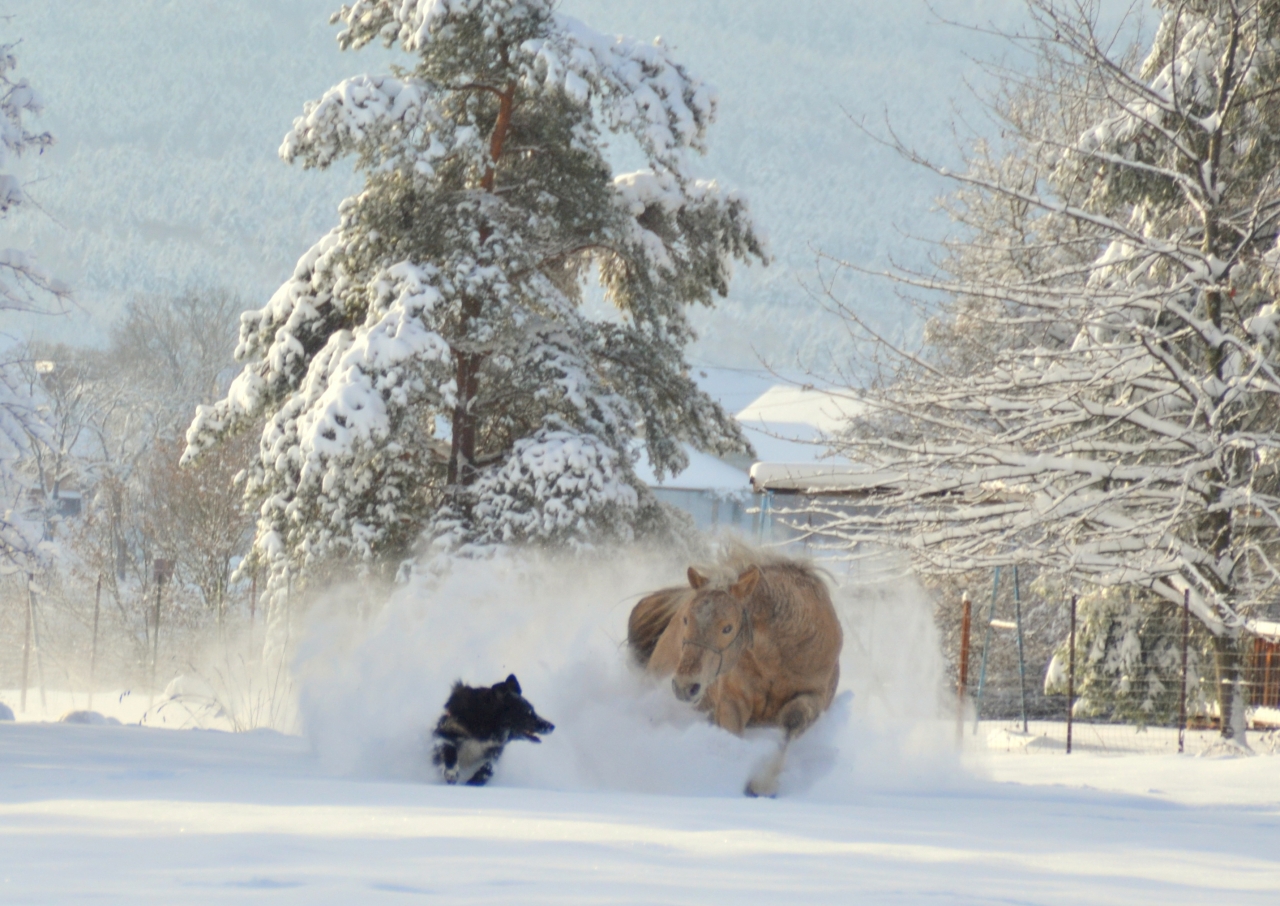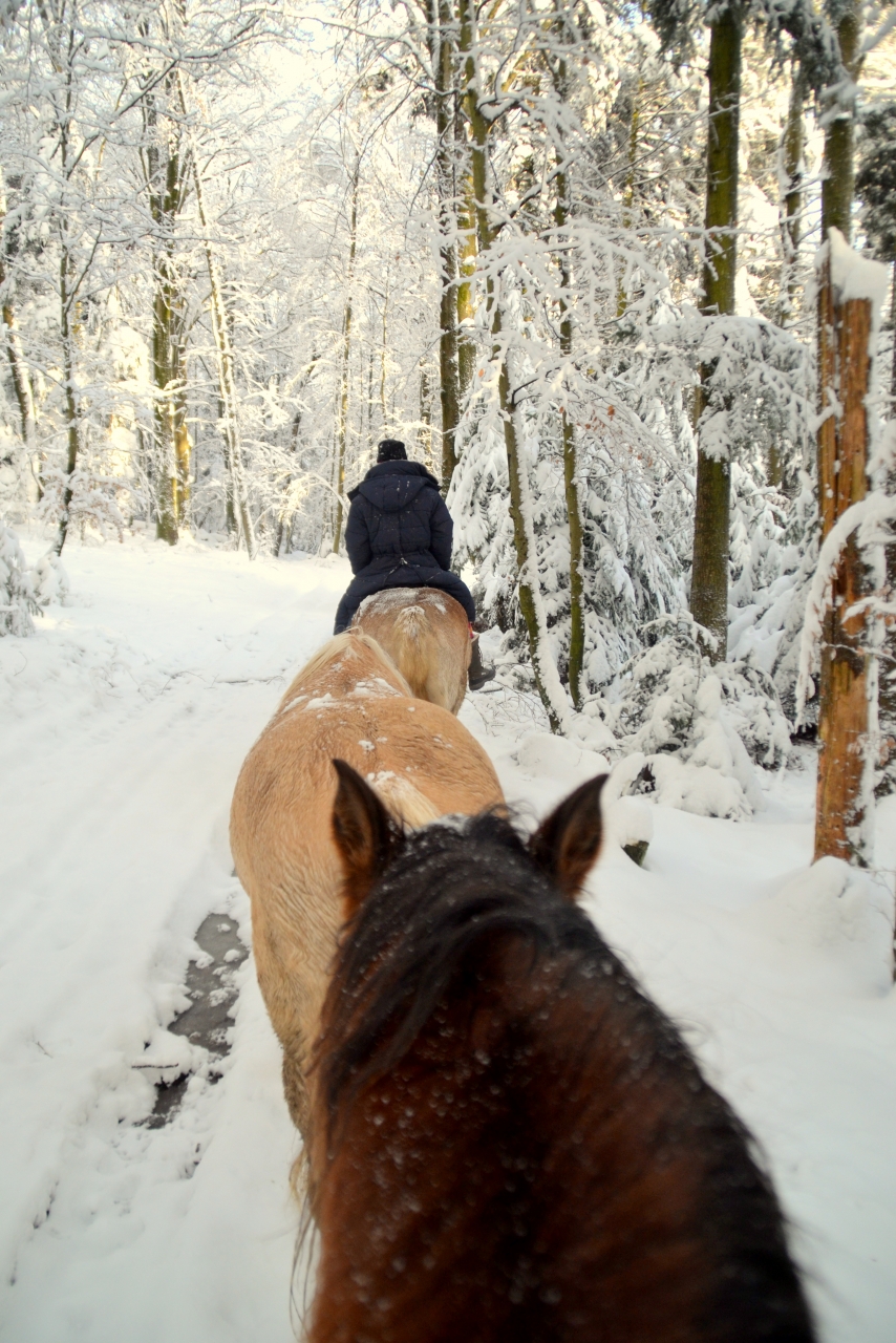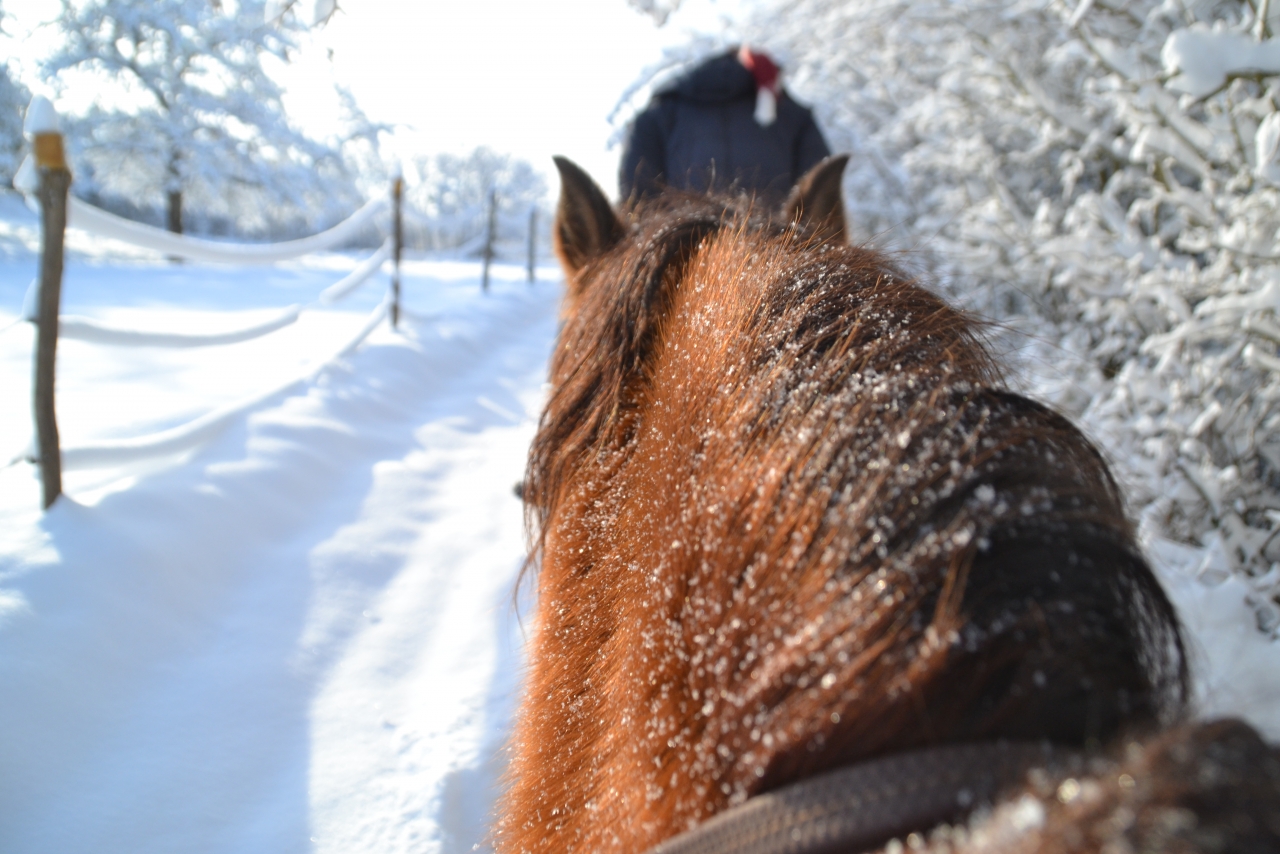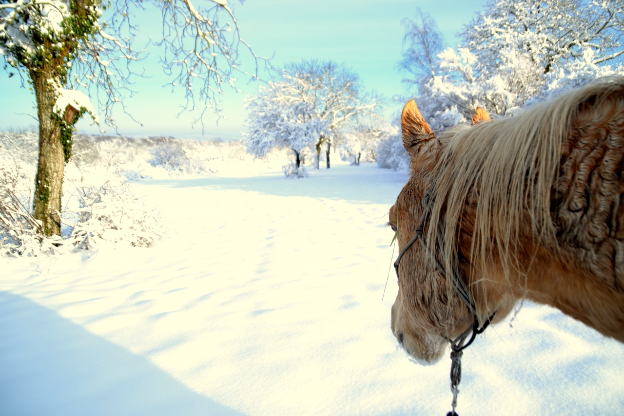 | Dire merci | Il a neigé !!! tout plein tout plein !! 30cm c'était un peu la galère pour aller chez les poneys, mais on en a super profité, et les chevaux étaient contents d'avoir de la neige, et plus de la boue... bon ça ne durera pas lol .. Vendredi une balade avec ma soeur, nous avons monté les retraités, et laissé le jeune en liberté. Il était joyeux, et il a kiffé ! Une neige toute fraiche, personne n'est passé avant nous, un beau soleil, c'était juste wahou Samedi, une belle balade juste avant la nuit, on avait prévu de la faire en début d'aprem, mais ma soeur à gentillement mis son duster dans le fossé lol .. blanc sur blanc, on voit pas bien la route du fossé ahahah On a fait un joli trot, et un petit galop, cette fois ci j'ai monté mon petit Gé, qui était top ! Au galop il aurait bien fait le zouave, mais il s'est contenu hihiAujourd'hui c'était moins agréable, une petite promenade avec un petit galop, mais il neigeait de gros flocons tous mouillés berk ... c'est reparti pour la fonte ça va de venir un gros truc dégeu mais bon, au moins on à profité un peu ![]() ![]() ![]() ![]() ![]() ![]() ![]() ![]() ![]() ![]() ![]() ![]() ![]() Bon on a toujours pas vraiment travaillé avec tout ça ... Demain essai de selle avec le commercial forestier qui vient, on va voir ce que ça donne. Et le 1er et 2 février, dernier module de formation TREC, j'espère avoir le temps de monter un peu carrière d'ici là. Et vous vous avez fait des balades dans la neige ??? |