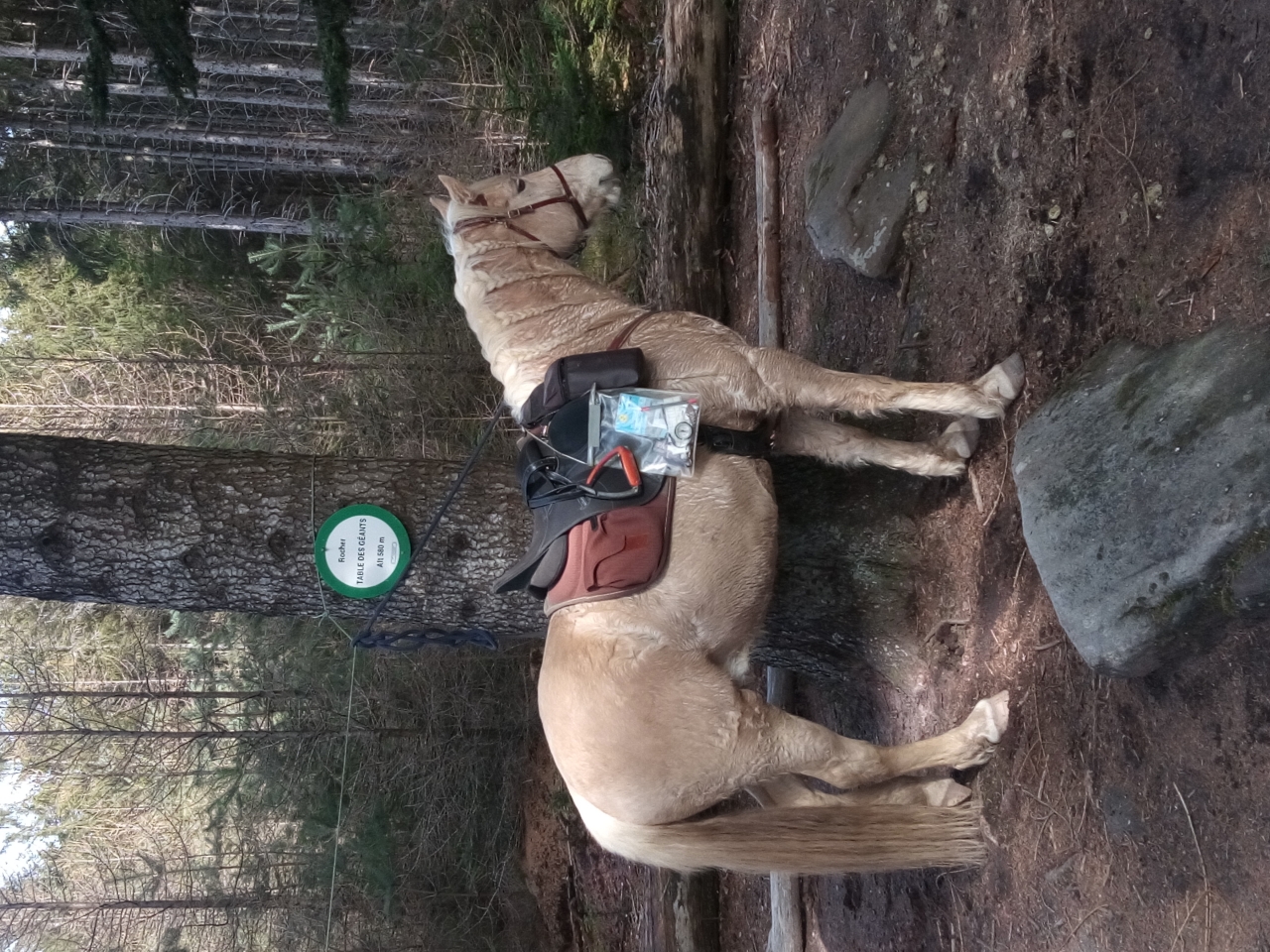 | Dire merci | Jeudi petite sortie de 3h, et première sortie en T-shirt de l'année Et tout de suite trop chaud ! vive l'Alsace..Il a fait un truc un peu bizarre au début, sur une longue montée mais pas raide, on était au pas, et il s'est mis à s'arrêter, d'abord je croyais qu'il voulait faire pipi mais pas du tout.. et après il s'arrêtait et posait son nez contre un arbre WTF ?? Il a fait ça au moins 5 /6 fois ... Puis après plus rien Il est bizarre ce poney On part en rando demain et mardi !! C'est la 3e qui est au programme, mais les deux premières ont du être annulées cause météo, j'ai hâte !! |