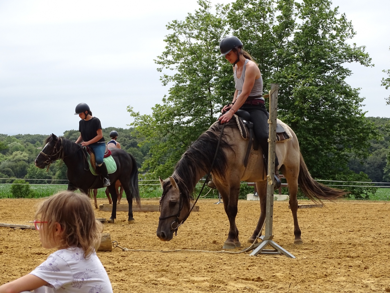 | Dire merci | pez j'ai pensé à toi, plusieurs personnes me demandent si Feenouic s'écrit comme le trans-palettes... Bon, moi je n'avais jamais entendu parler de cette marque alors ça ne me fait rien Mais je pense que "Transpalette" va vite venir dans mon vocabulaire lorsqu'il m'énervera Bon, du coup, nouvelles. Fifi a été assez longtemps arrêté suite à un mauvais coup de pied, qui lui a fait une boule, qui n'a rien donné à l'écho, mais qui finalement s'est avérée être un abcès (qui a percé), mais s'est reconstitué, bref... L'avantage, c'est qu'il n'est pas douillet le poney. Puis il a (re)sailli avec acharnement Inara, ce qui lui a fait perdre pas mal de kg au passage, changeant sa morpho (et donc encore la selle). Enfin bon je l'ai quand même inscrit à un stage de mountain trail. Au final nous nous sommes pointés au stage après plusieurs mois sans rien faire et juste 2 séances en amont : l'une consistant en une balade de 1.5km juste pour lui montrer que quand je l'éloigne de ses juments, on revient ensuite (et au passage vérifier que son abcès ne le gène pas en sortie montée) ; l'autre consistant à amener Inara dans une autre parcelle et en profiter pour le bosser en présence d'Inara qui s'arrête brouter et nous rejoint plein cul en nous dépassant (ça ce n'était pas prévu mais ma foi, bon entrainement !) puis en présence des juments vides de l'autre côté du fil. Bon eh bien, arrivés au stage, pour être génial, il était génial. C'était en tout en pour tout la 7e fois de sa vie qu'il était monté, et pourtant il n'avait pas à rougir face aux chevaux ayant de la bouteille, sur les difficultés du parcours. Il a aussi bien plu au coach qui n'arrêtait pas de le prendre pour les démos (et encore une bonne expérience pour le cheval qui ne connait que moi). Bon, au début, en manège avec tous ces chevaux, il a fallu gérer un peu les hormones, mais une fois qu'il a compris que sa place était au boulot, il a été parfait. Quant aux obstacles, un calme exemplaire. Il n'y a que la "souche de bois qui poursuit le cheval" qu'il n'a pas trop aimée Mais en revanche il a vite appris le "touche avec le nez pour que j'arrête ma demande". Franchement, j'ai l'impression d'avoir fait 6 mois de boulot dans une journée. Bon, il reste bien sûr à affiner les aides, à bosser le trot et le départ au galop (pas trop d'endroits pour ça chez moi).Voilà la petite vidéo d'une simulation de concours à la fin du stage. Dans moins d'un mois, on part en rando en famille dans l'Aveyron, Feenouic en cheval de bât + de selle pour la petite quand elle sera fatiguée de marcher. |