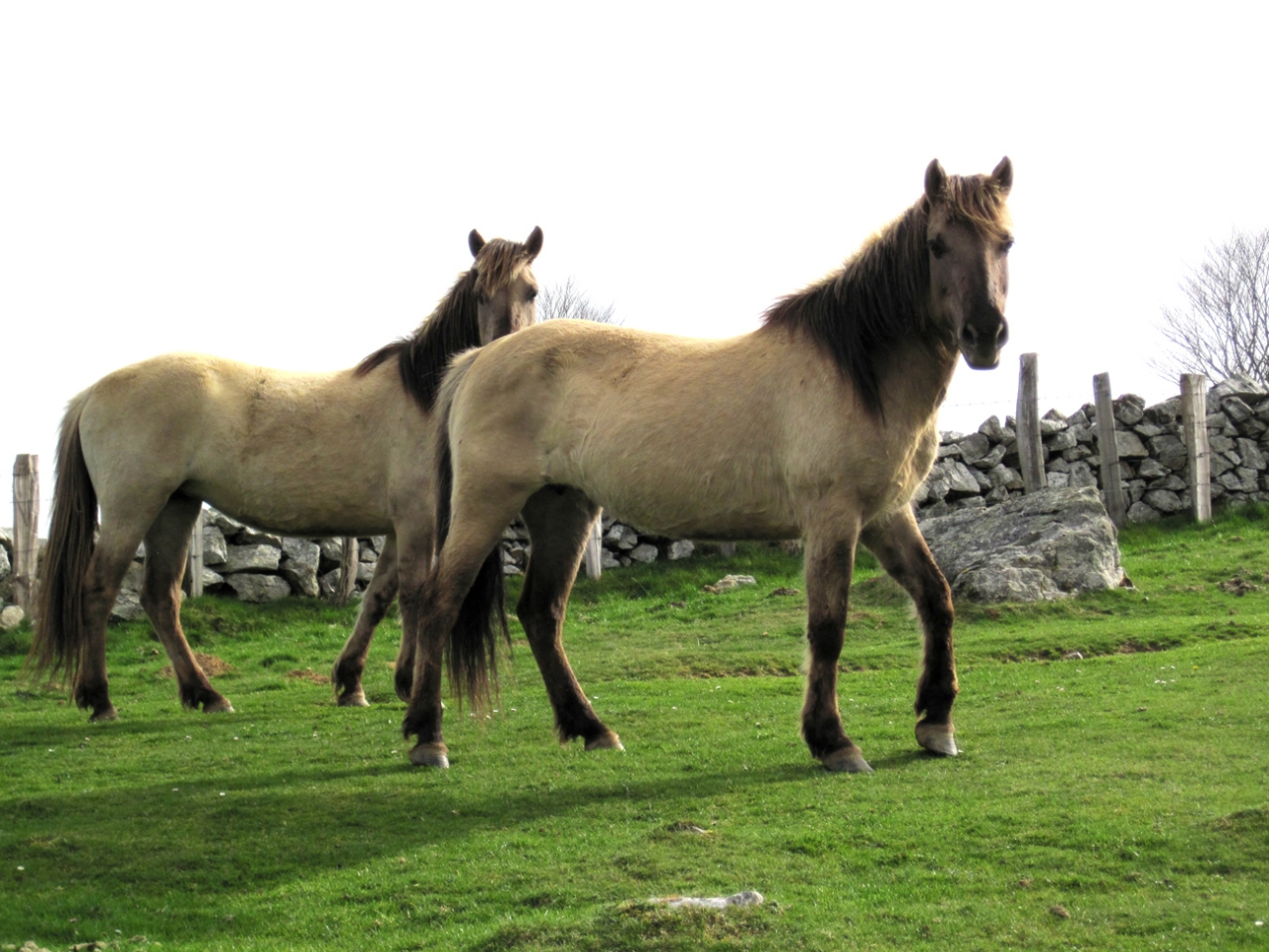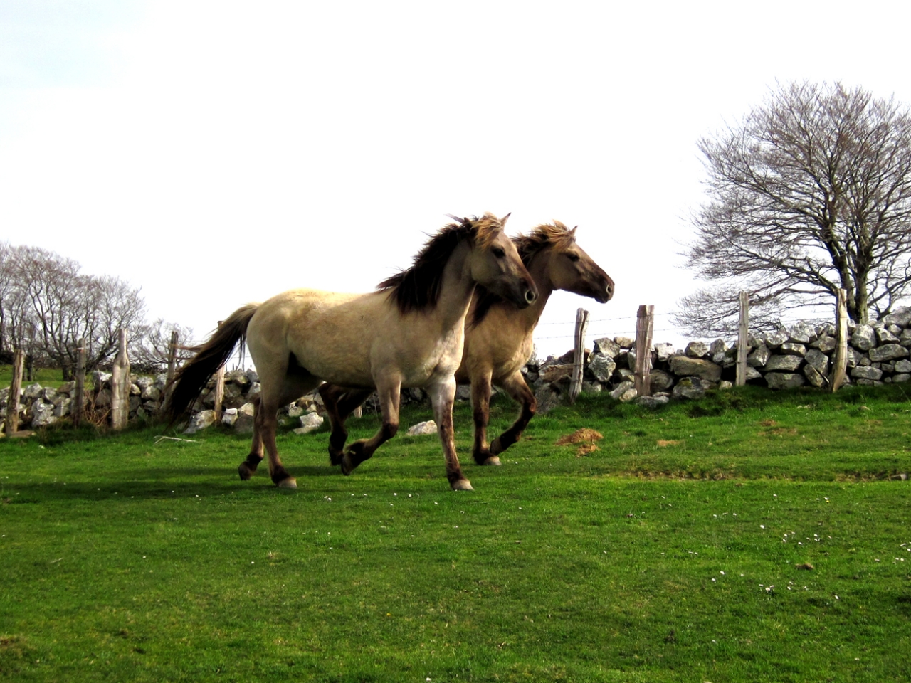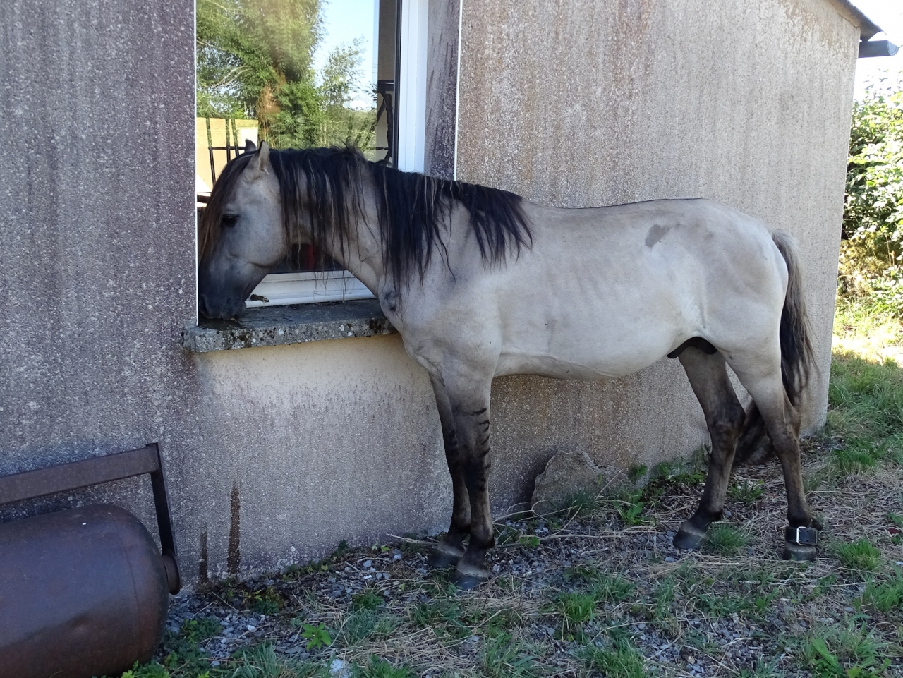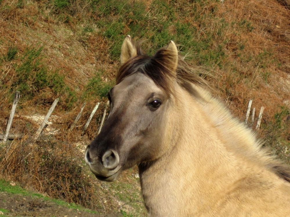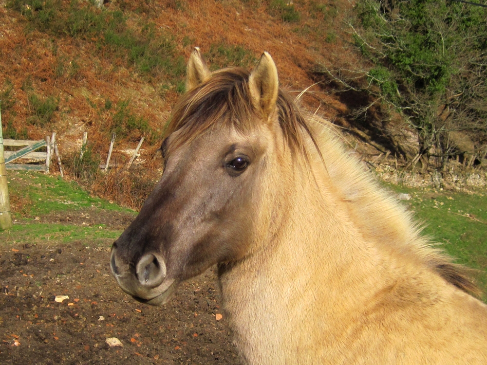 | Dire merci | ... souris, ou autrement dit grullo, bien sûr ! 1er Janvier 2020, 6h, il fait nuit, et la route est très, très calme ! Me voilà partie pour notre nouvelle aventure, deux juments konik polski (ONC, comme la plupart en France ) qui m'attendent dans le Gers. De quoi souhaiter la bonne année à ma famille avec de la couleur dans le van !Retour quelques jours en arrière, où nous fêtions Noël à Toulouse, et qu'au retour, nous faisons un petit détour par Mirande pour y voir ces deux ponettes, trouvées sur Lebonfoin. Prix dérisoire (je ne sais même pas si c'était celui de la boucherie), aller, on y passe juste pour voir, pour ne pas regretter de n'y être pas allés. Mais là, on tombe sur deux ravissantes ponettes, aplombs pas mal du tout, bon dos, plutôt joli modèle pour la race ! La maman, Niagara, 11 ans, a quand même une croupe très "konik polski", un peu plate et assez peu gracieuse. Le reste est très, très convenable. La fille, Aiko, 75% konik polski, 25% sorraia, est plus fine, avec une croupe plus ronde. Moins typée que sa mère. On tente quelques allers-retours en licol pour voir les allures, pas facile de les faire aller droit ni de leur prendre les pieds. Bon, RAS, ce ne sont pas des allures de chevaux allemands de dressage, certes, mais c'est plutôt bien. Bon, et puis, on ne va pas se mentir. La réalité c'est qu'elles nous ont tapé dans l’œil, et surtout dans le cœur. Entre Niagara qui faisait des freu-freu à notre fille de 5 ans dès qu'elle s'en éloignait, et Aiko qui faisait du charme à mon mec, elles nous ont mis d'accord. Alors voilà, affaire conclue. Deux portraits en sortie du van, jour 1 (1er janvier 2020, donc !) Aiko ![]() Niagara ![]() Après quelques semaines avec nous pour faire connaissance, les pré-débourrer (monter dessus à l'arrêt, aides de base au pas), les vacciner, on les a envoyées en montagne, qui sera leur habitat à l'année, sauf pour les mises bas et les saillies. Premières minutes de liberté ![]() ![]() ![]() Niveau allures, ce n'est pas St Georges, mais c'est plaisant quand même à regarder ![]() ![]() Deux licornes ??? ![]() Les modèles : ![]() |