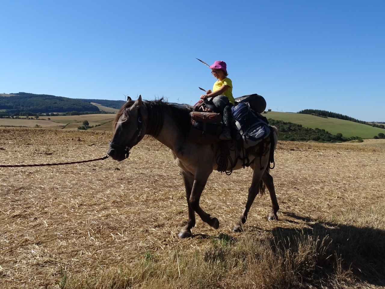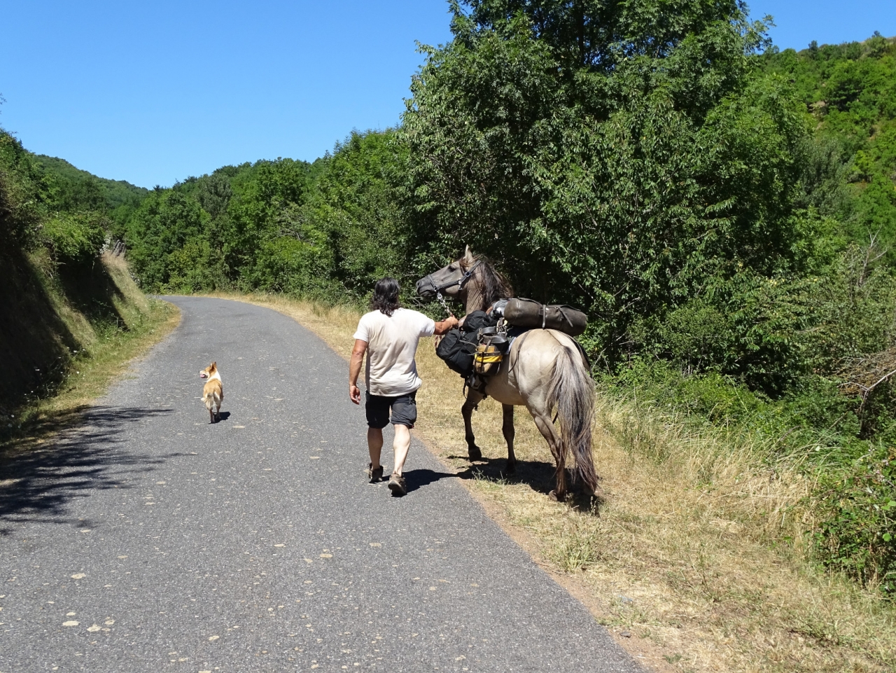 | Dire merci1 | Par contre oui, le cheval topissime et le chien aussi (jeune chienne de 1an qui aime beaucoup les brebis...). On a vraiment l'impression d'avoir fait un pas de géant avec les deux quadrupèdes pendant cette rando, niveau lien comme éducation. Et ça c'est vraiment top ! |