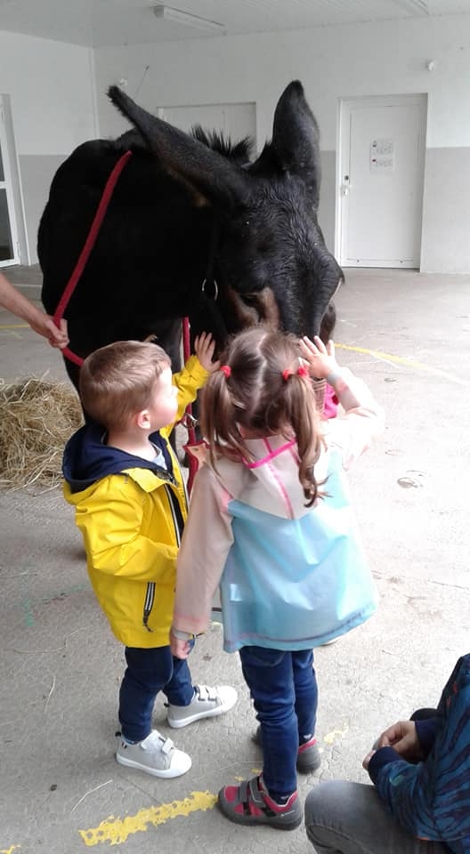 | Dire merci | Mince, on a changé de page ! Je fais un copié collé ici : Des nouvelles ! Nous avons déménagé mercredi dernier, on vit dans un bazar monstre mais on est contents. Les ânes nous ont rejoints hier. Je tenais à vous partager ces photos de mon formidable Berni qui est venu avec moi au travail vendredi dernier... je bosse dans un collège ![]() Nous avions seulement 10 élèves cette semaine (enfants de soignants), et j'ai eu l'idée d'amener un âne pour proposer un après-midi ludique. La direction étant très enthousiaste, le projet a vite fait le tour de l'établissement pour le plus grand plaisir de tous Je crois que nous avons tous besoin de légèreté et de bonne humeur en ce moment... Berni a donc débarqué à 13h vendredi dans la cour de récré. L'espace potager avait préalablement été clôturé avec quelques élèves aux petits soins pour lui préparer un bel enclos. Au programme, séance de pansage, découverte de l'animal, puis balade dans les bois avec une prof d'EPS. Berni à comme d'habitude été parfait, ses laissant promener et caresser par tout le monde avec douceur. Les élèves se sont éclatés et tout le personnel est sorti pour l'admirer ou lui faire une gratouille ![]() (j'ai flouté les visages) [url=https://www.1cheval.com/membre/services/photos/images/254639.jpg" class='zoombox zgallery2295430' ] ![]() [/url] Il a même eu l'honneur de recevoir son carnet de correspondance à la vie scolaire de la main de la CPE hilare ![]() Merci mon âne distributeur de sourires ![]() Message édité le 02/05/21 à 21:06 |