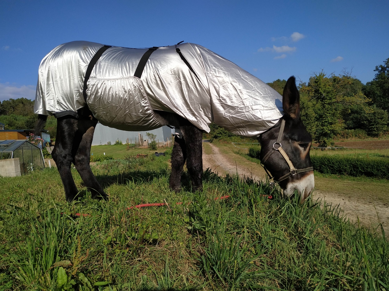| Dire merci | Je lui ai trouvé une couverture chez Padd, elle tient le coup pour l'instant.![]() Au moins il ne risque pas de se faire tirer dessus par les chasseurs, restons positifs J'ai acheté une crème bien chère qui le soulage moyennement, je tenterai l'huile de coco. Les ânes ont le poil très épais, je vous dis pas l'état de la bête... c'est gras, poisseux. En été je pouvais doucher de temps en temps, mais là c'est fini ! |
