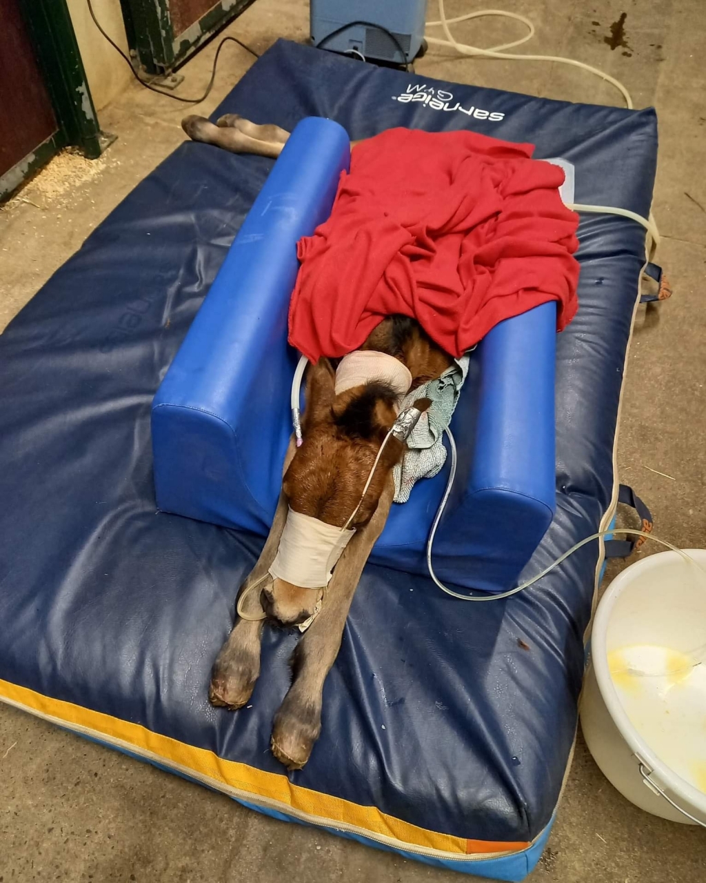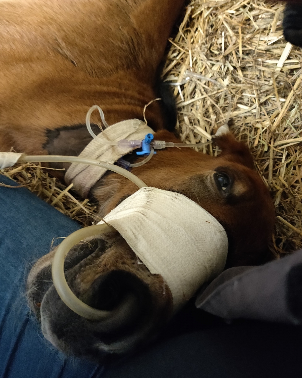 | Dire merci | Bon j'ai un peu de temps devant moi, alors jvais vous raconter l'épopée qu'on vit à l'élevage depuis un mois. Pour résumer? si la personne qui fait mumuse avec ma poupée vaudou pouvait arrêter, siouplé, ça serait sympa ![]() début mars 2022: Eléa fait une bête glissade et se pète un ligament collatéral interne du grasset.... raide boiteuse, elle se couche tellement elle a mal, et vu qu'elle est fraichement pleine, en prime, on peut pas blinder d'AINS mais bon, au box avec sa meilleure amie Lebrera, dans 60m², elle gère et ne se plaint pas.... 23 mars: Calina se décide enfin à pouliner, enfin plutôt à expulser, tel un bouchon de champagne, une pouliche aux jambes interminables! Pas très dégourdie la miss, mais pas trop mal non plus, elle s'améliore sur les premières 48h grâce à nos nombreux biberons, mais se dégrade brutalement au 3e jour: septicémie, on file en clinique, où, d'après les vétos, elle a commencé par un syndrome de malajustement néonatal sous une forme très atypique (regardez "dummy foal syndrom" sur google pour ceux qui veulent voir). Elle est dans un état très critique pendant 60h ![]() ![]() mais elle s'améliore petit à petit. Quand elle est assez vaillante pour se lever et téter seule, on la ramène à la maison, on découvre (enfin!) une pouliche pleine de vie, hyper câline et une vraie boite à conneries! (voir sur facebook les vidéos sur elle, elle est trop marrante )![]() elle s'appelle METEORE D'AUREA ![]() après 10j d'antibios et de soins du cordon (le canal de l'Ouraque s'était rouvert), elle est considérée comme sortie d'affaire, reste à gérer ses aplombs mais sinon ça va ![]() à part un gros trou dans mon compte en banque ( ), tout va bien. |