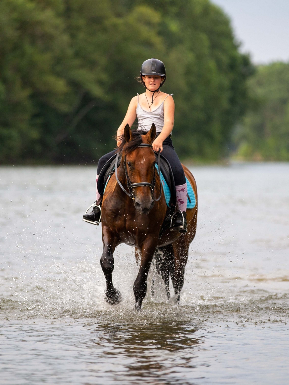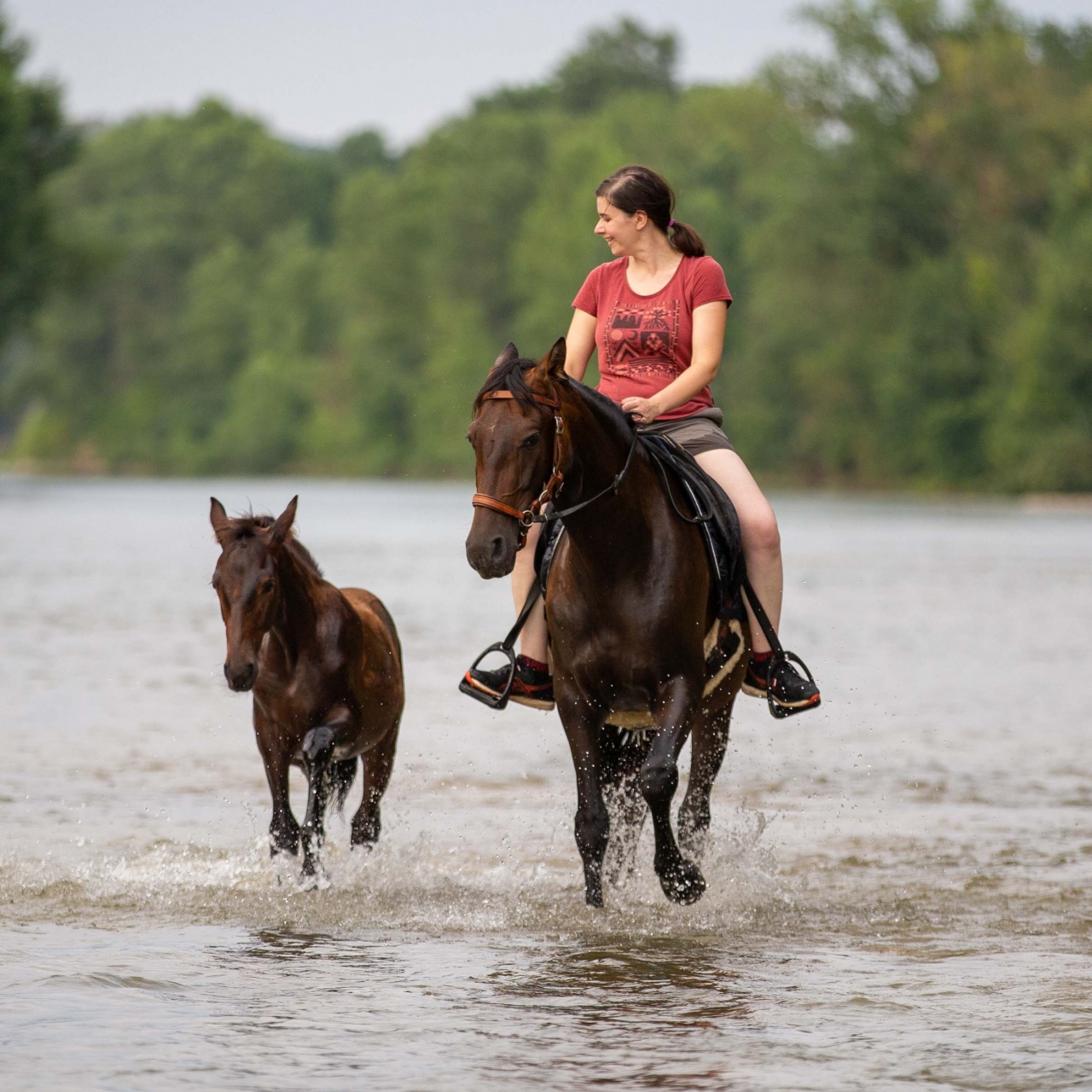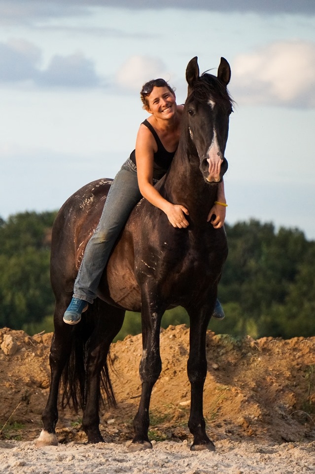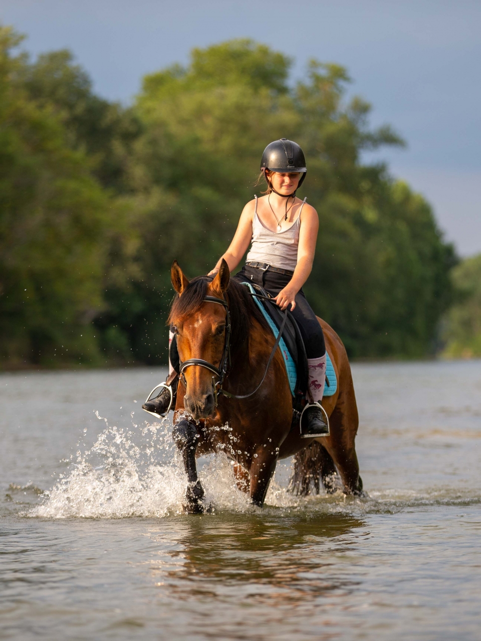 | Dire merci | Balade à la Garonne, le retour Bon, à force, on sait plus trop quoi dire, mais j'essaie toujours de trouver un nouveau spot, de nouveaux chevaux à emmener, de nouveaux cavaliers pour varier les photos, etc ![]() Alors cette fois-ci, avec la future propriétaire de Nério, on est partis en famille: ma petite famille (PE à l'appareil photo, moi sur la berge avec poupette qui criait de joie de voir tous les chevaux d'un coup), et la sienne, avec entre autres sa fille à cheval sur Invasor. Ben clairement je peux le vendre en notant qu'il est impeccable avec des enfants (et Jaguar aussi d'ailleurs, 11 et 9 ans, ça passe nickel )![]() ![]() Fanny qui était fière comme tout de faire la star devant les objectifs! (car un ami de sa mère était venu et prenait aussi des photos) ![]() Et puis y'a Jaguar (et Nuance)...Et Mélanie. Petit trio temporaire, qui deviendra un vrai duo cet automne au sevrage de Nuance, car c'est Mélanie qui a craqué sur la belle plante et qui s'est fait un méga kiff en montant la mère de sa pouliche et en caressant sa pouliche à cheval dans la Garonne ![]() ![]() Ensuite, y'a Perrine, qui voulait vraiment faire de belles photos souvenir avec Nério, sauf que ce dernier n'était pas du même avis ![]() ![]() ![]() heureusement Calina rattrapait un peu le coup ![]() Parce que sa chochotte de fiston avait encore une fois décrété que l'eau, ça mouillait, et que c'était trop naze ![]() ![]() *suite* |