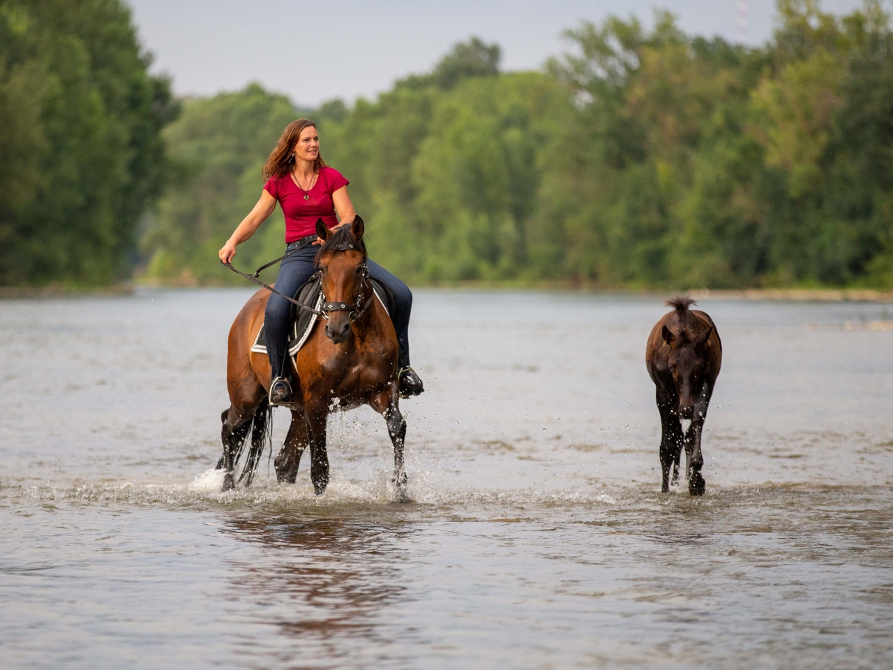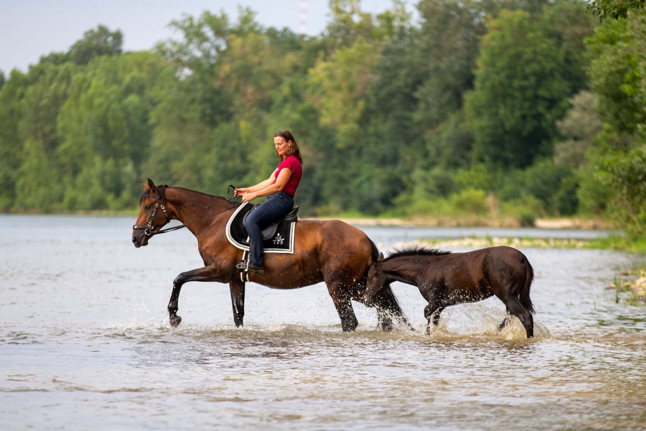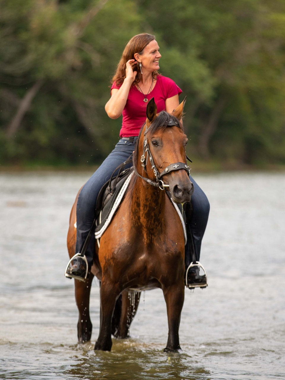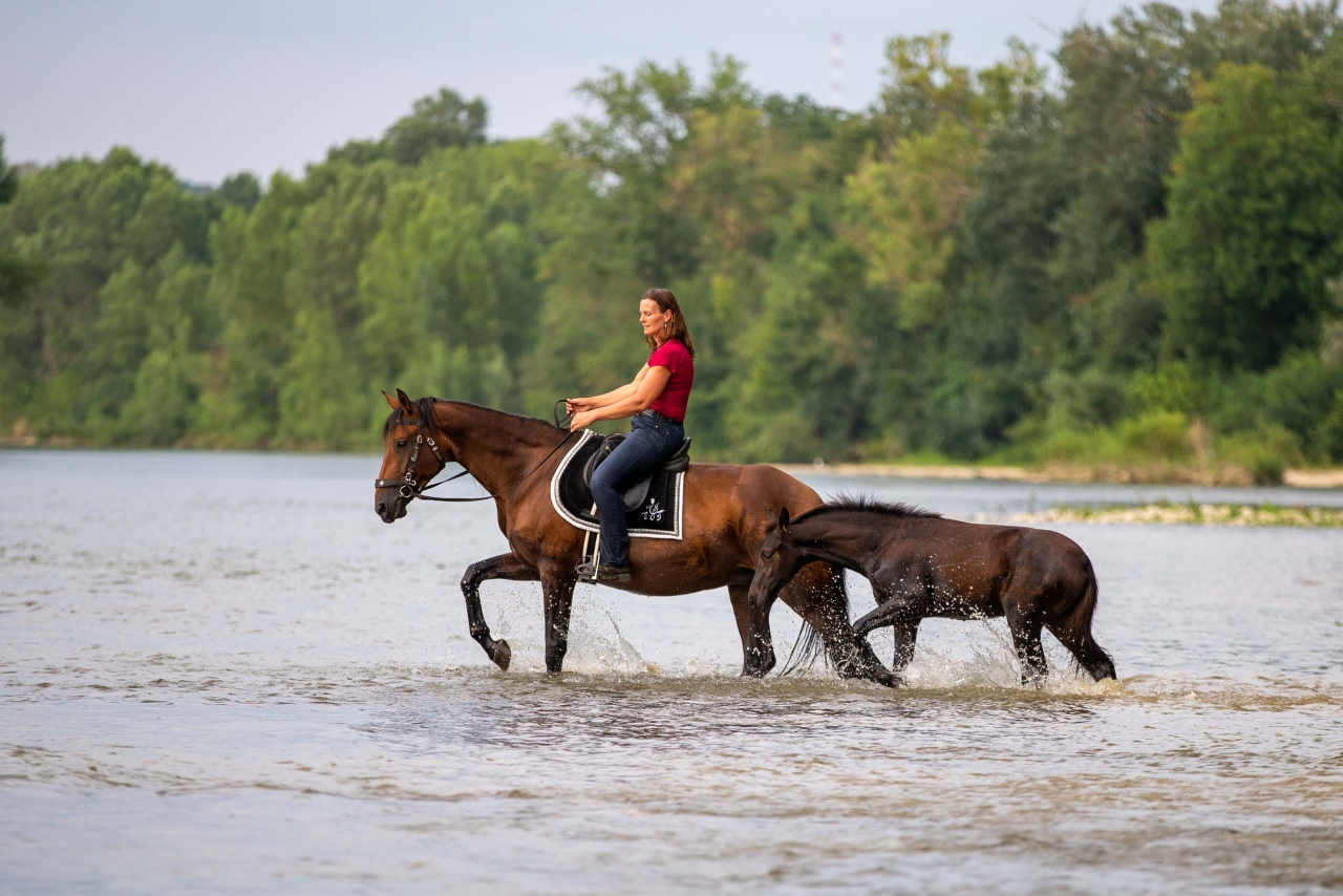 | Dire merci | Balade à la Garonne, le retour Bon, à force, on sait plus trop quoi dire, mais j'essaie toujours de trouver un nouveau spot, de nouveaux chevaux à emmener, de nouveaux cavaliers pour varier les photos, etc ![]() Alors cette fois-ci, avec la future propriétaire de Nério, on est partis en famille: ma petite famille (PE à l'appareil photo, moi sur la berge avec poupette qui criait de joie de voir tous les chevaux d'un coup), et la sienne, avec entre autres sa fille à cheval sur Invasor. Ben clairement je peux le vendre en notant qu'il est impeccable avec des enfants (et Jaguar aussi d'ailleurs, 11 et 9 ans, ça passe nickel )![]() ![]() Fanny qui était fière comme tout de faire la star devant les objectifs! (car un ami de sa mère était venu et prenait aussi des photos) ![]() Et puis y'a Jaguar (et Nuance)...Et Mélanie. Petit trio temporaire, qui deviendra un vrai duo cet automne au sevrage de Nuance, car c'est Mélanie qui a craqué sur la belle plante et qui s'est fait un méga kiff en montant la mère de sa pouliche et en caressant sa pouliche à cheval dans la Garonne ![]() ![]() Ensuite, y'a Perrine, qui voulait vraiment faire de belles photos souvenir avec Nério, sauf que ce dernier n'était pas du même avis ![]() ![]() ![]() heureusement Calina rattrapait un peu le coup ![]() Parce que sa chochotte de fiston avait encore une fois décrété que l'eau, ça mouillait, et que c'était trop naze ![]() ![]() *suite* |