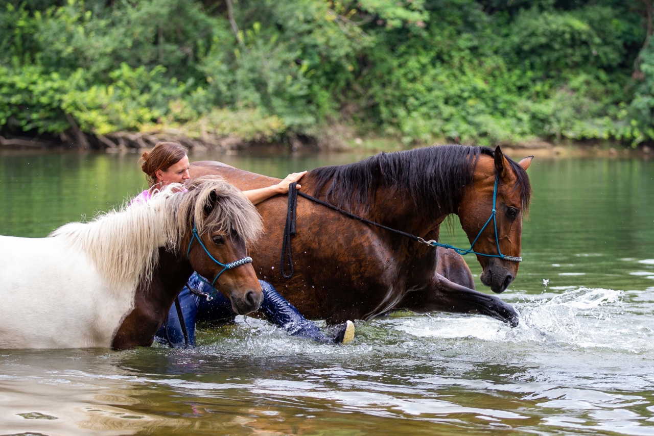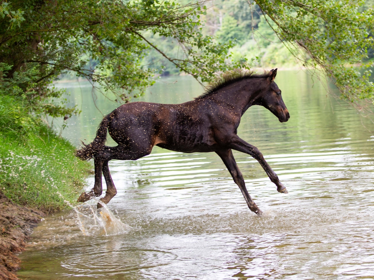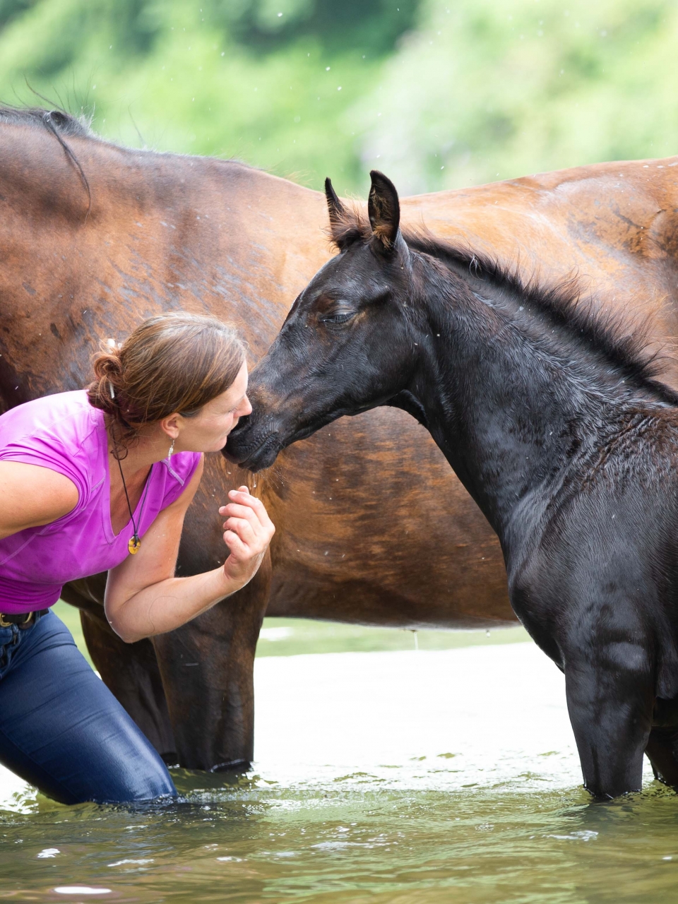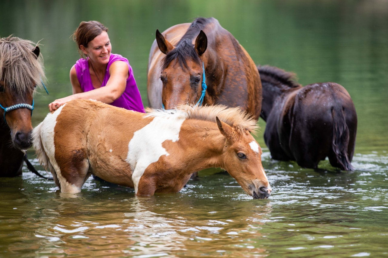 | Dire merci | coucou tout le monde! Nous revoilà avec une petite série de photos faites à la Garonne hier!![]() On est parties juste à 2, avec Perrine, ma première maitresse de stage quand j'étais en école véto. Elle a un élevage de camargues, et elle a eu récemment de nombreuses déconvenues (ses 2 juments saillies par Akanto ont avorté, sa meilleure poulinière est décédée en poulinant), et pour se consoler elle est venue voir son coup de coeur... Nério ![]() du coup ni une, ni deux, on part à la plage avec Calina, Jaguar et Sunna, dont c'était la première sortie ![]() Perrine a été bluffée par le caractère de mes juments, elle était circonspecte quand elle m'a vue sortir 3 juments suitées alors qu'on n'était que 2 et que j'avais l'énorme appareil photo de chéri-chéri en bandouillère mais tout le monde a été top, et ça nous a permis de faire une belle séance photo ![]() ![]() ![]() ![]() ![]() alors lui il a vite pigé l'intérêt de la flotte, et ne s'est pas fait prier pour barboter bien plus à l'aise que sa mère d'ailleurs ![]() bébé bogoss ![]() qui, pour le coup, n'a pas spécialement aimé l'eau, et a rechigné à plonger pour faire de belles photos....sauf au dernier moment, et là, attention les yeux ![]() ![]() ![]() ![]() |