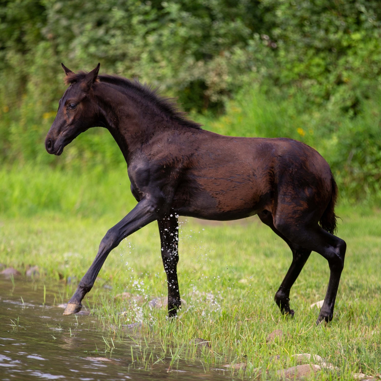 | Dire merci | Njall me fait trop rire. C'est peut-être bizarre comme commentaire, je m'en rends bien compte. Ce n'est absolument pas négatif, bien au contraire. C'est juste que j'adore son petit air plein de fierté alors qu'il est tout jeune comme ça, un peu comme quand un gamin se déguise en adulte. Mais sinon oui, bien sûr, il est fort joli. Je me demandais, est-ce que tu as une idée de combien il toisera adulte ? Ou globalement, quelle taille penses-tu avoir avec ce croisement islandaisxPRE ? |