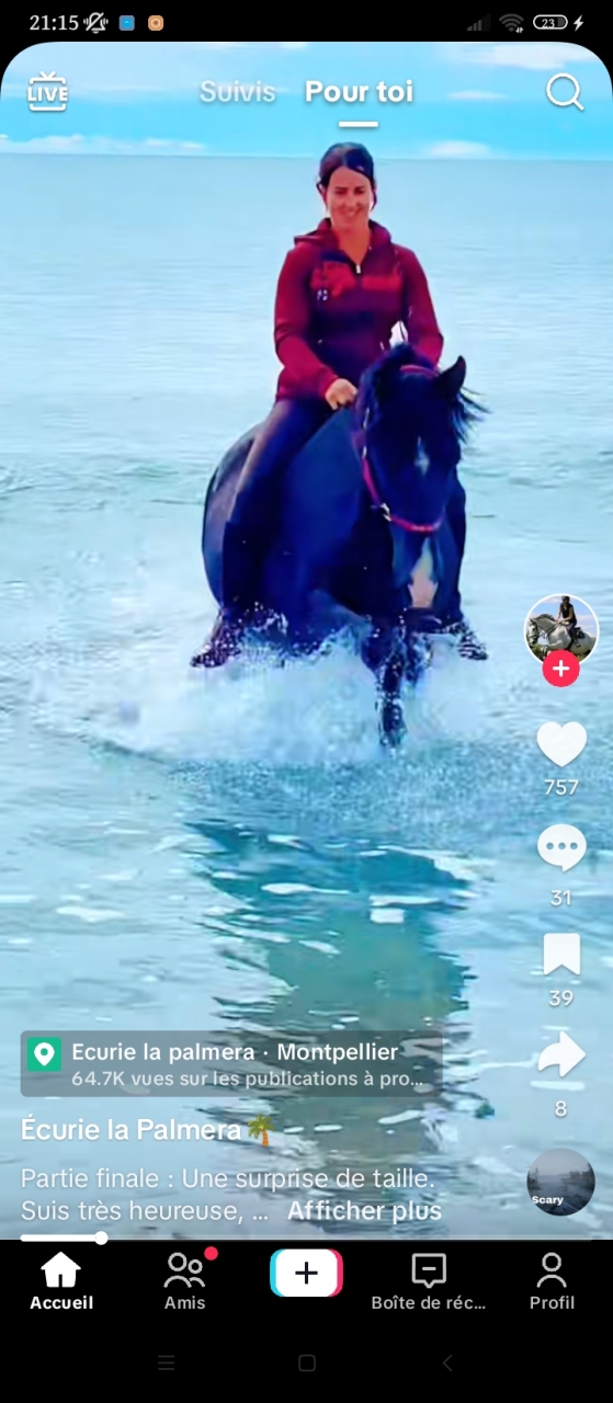 | Dire merci | Remontage de poste parce que je viens de télécharger Tik tok ( pourquoi? ) Et je tombe sur une vidéo où une personne parle d'un étalon qui s'appelle Akanto et qui ressemble comme deux gouttes d'eau au tien al ! Il est à Montpellier? |