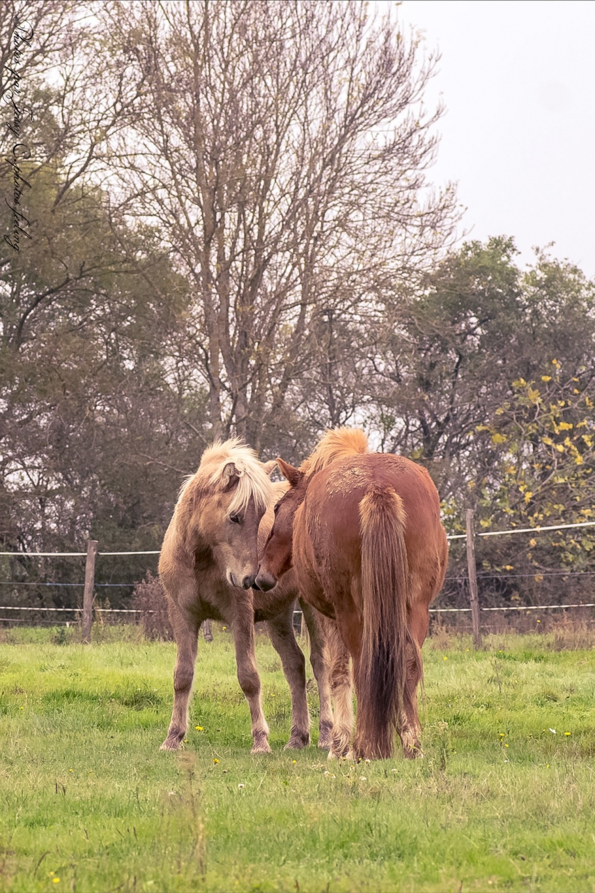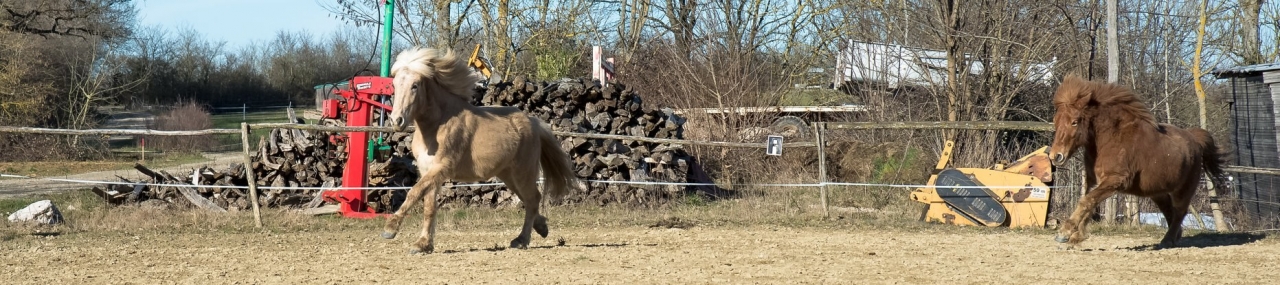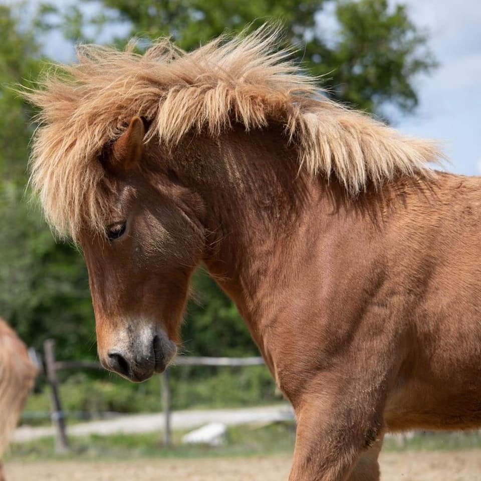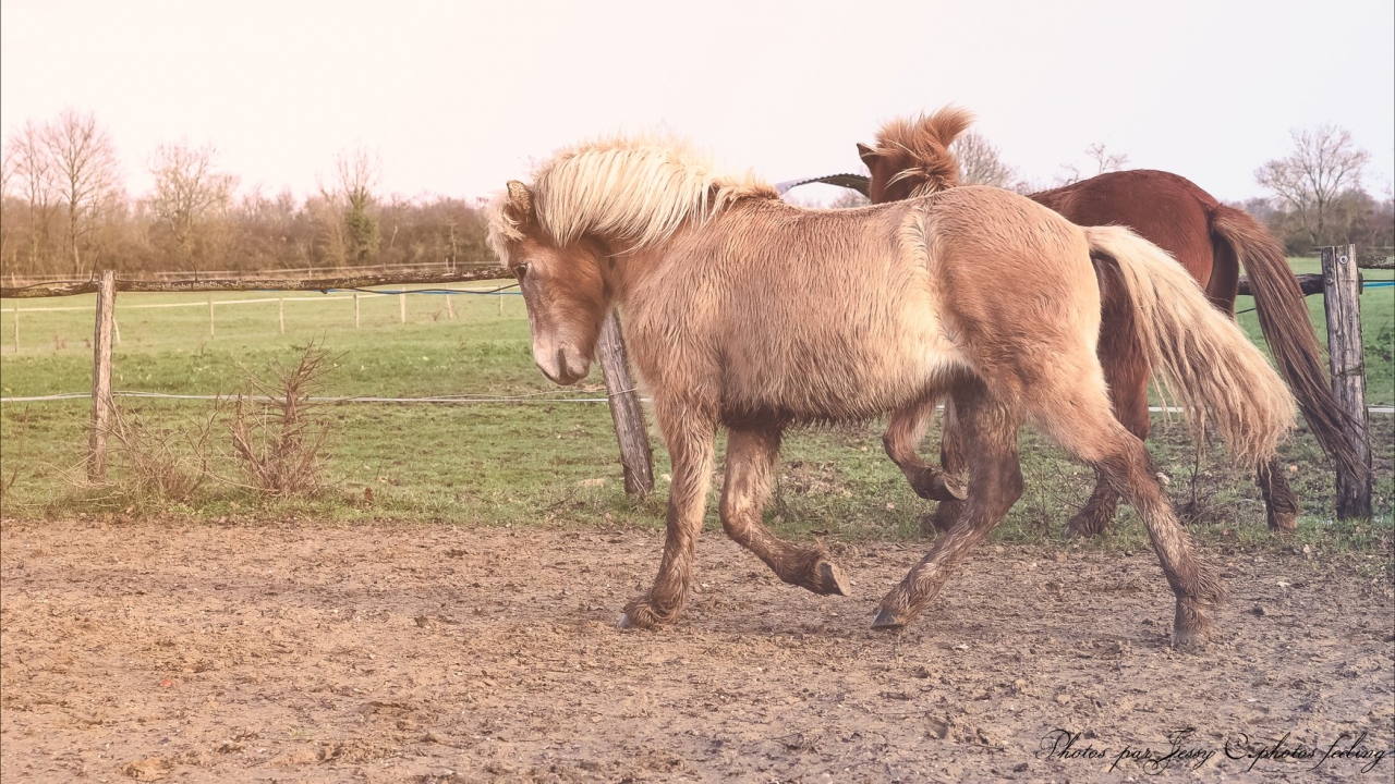 | Dire merci | Dans mon premier club (un centre de tourisme équestre en fait, on ne faisait que de l'extérieur), la cavalerie poney était constituée d'islandais. J'en avais discuté avec mon ancien mono, des années après, et il m'avait expliqué qu'après avoir envisagé d'autres races, il avait découvert l'islandais et avait été conquis par sa gentillesse, sa fiabilité... et son confort pour des cavaliers débutants. ![]() Et c'est vrai que comparé aux quelques autres poneys, dont mon chouchou, Vaky, et son pote Diaoulic, qui enchainaient les conneries, les islandais faisaient premiers de la classe! Aujourd'hui, ce club en a une quinzaine (4 à mon époque), et n'a pas l'intention de changer sa cavalerie. ![]() |