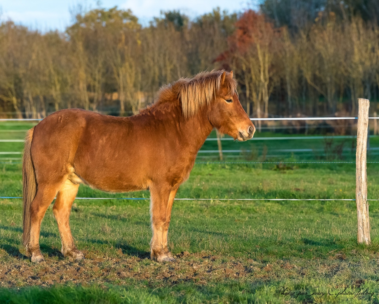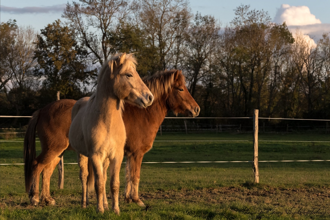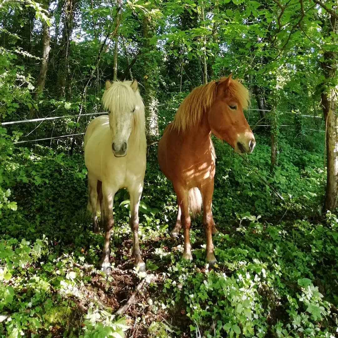 | Dire merci | Dans mon premier club (un centre de tourisme équestre en fait, on ne faisait que de l'extérieur), la cavalerie poney était constituée d'islandais. J'en avais discuté avec mon ancien mono, des années après, et il m'avait expliqué qu'après avoir envisagé d'autres races, il avait découvert l'islandais et avait été conquis par sa gentillesse, sa fiabilité... et son confort pour des cavaliers débutants. ![]() Et c'est vrai que comparé aux quelques autres poneys, dont mon chouchou, Vaky, et son pote Diaoulic, qui enchainaient les conneries, les islandais faisaient premiers de la classe! Aujourd'hui, ce club en a une quinzaine (4 à mon époque), et n'a pas l'intention de changer sa cavalerie. ![]() |