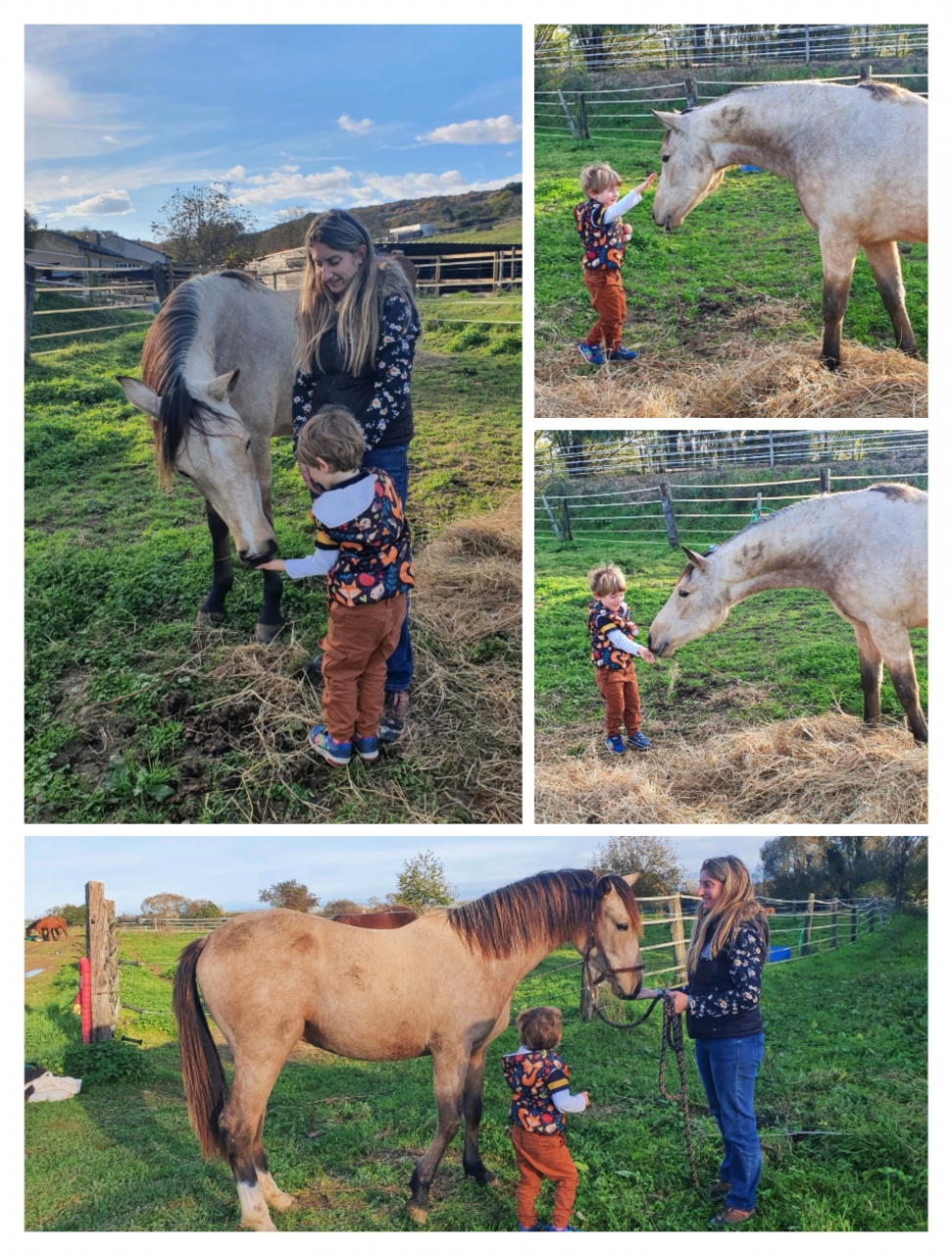 | Dire merci | Ouais jvais voir ça ! Hier rencontre avec Maël Ma maman était la, heureusement car un peu sportif de gérer le gosse et le poulain fraîchement arrivé ![]() On a sorti Nobel du paddock et on s'est promené dix minutes ds la future écurie active. Il a des réactions super saines c'est agréable. Il est curieux, attentif, mais sans débordement. Il sent la bâche, ou ça fait peur mini écart mais tt de suite de nouveau attentif et calme. C'est vraiment agréable Puis avec moi ben il a compris que j'avais des friandises DC la je vais calmer un peu tt ça, j'ai jamais eu de cheval quémandeur et envahissant donc on va faire gaffe hein ! Ok être bienveillant mais jvais pas devenir maman - gâteau DC voilà super gai, ça me fait tellement de bien au moral .. |