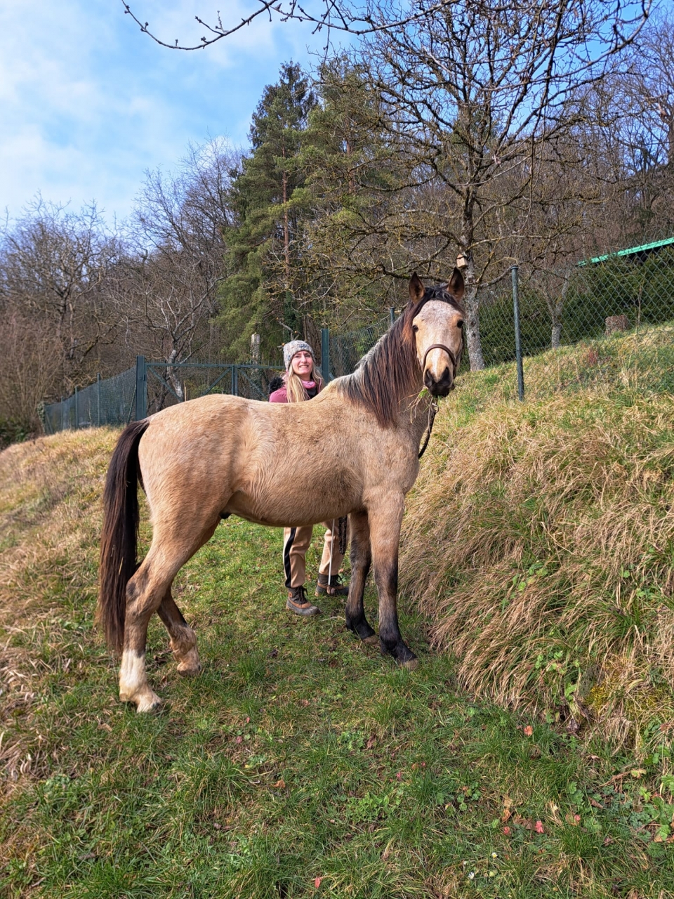 | Dire merci | Le post de la troupe belge... lorraine! Petit récapitulatif des acteurs Flicka, demi-sang arabe, 1996 la madone de l'équipe, ma jument de cœur avec qui j'ai partagé des moments inoubliables...Concours, vacances, spectacles...Je l'ai depuis ado et on a tout vécu ensembles. Elle est à la retraite depuis 2020, chez mes parents en Belgique. Début 2024, la vieillesse se ressent, au niveau comportemental/émotionnel et elle est sous traitement cushing qui l'apaise. Maintenant je l'accompagne comme je peux, dans sa vie de ptite mamie! ![]() Voltée, SF, 2009. Avec moi de ses 1an à ses 12ans. Voltée c'était le coup de foudre lors de la rencontre quand elle avait 6 mois, et une relation passionnée et passionnante sur un cheval trop compliqué, trop délicat. J'étais jeune et insouciante, j'étais pleine de confiance en moi, je pouvais gravir des montagnes! J'étais "surVoltée", et la miss m'a appris la remise en question, les difficultés, les hauts, et les bas... On a essayé plus de dix ans. Après une fracture du crâne, des stages, des bilans, encore des stages, j'ai passé la main, d'abord en confiage, puis en vente. Après qq moments difficiles post vente, maintenant tout va bien, chacun sa place, et moi je suis ravie d'avoir la place de la fan/paparazzi a ses heures et voir Voltée et son humaine s'épanouir dans le sport et une vie de rêve! ![]() Nobel, PFS, 2023 Le ptit nouveau! Après la fougue de la jeunesse, j'ai essayé de sélectionner mon prochain partenaire autant sur son mental que sur le reste, et j'ai trouvé ce ptit hongre tout mignon, fin, sensible mais serein et posé! Deux parents poneys sportifs de "famille", une bouille à croquer et plein de projets dans la tête! Il arrive en automne, je me réjouis de vous partager nos aventures! ![]() Message édité le 12/07/25 à 18:09 Message édité le 30/07/25 à 21:54 Message édité le 27/08/25 à 15:40 Message édité le 05/11/25 à 11:53 Message édité le 28/11/25 à 15:02 |