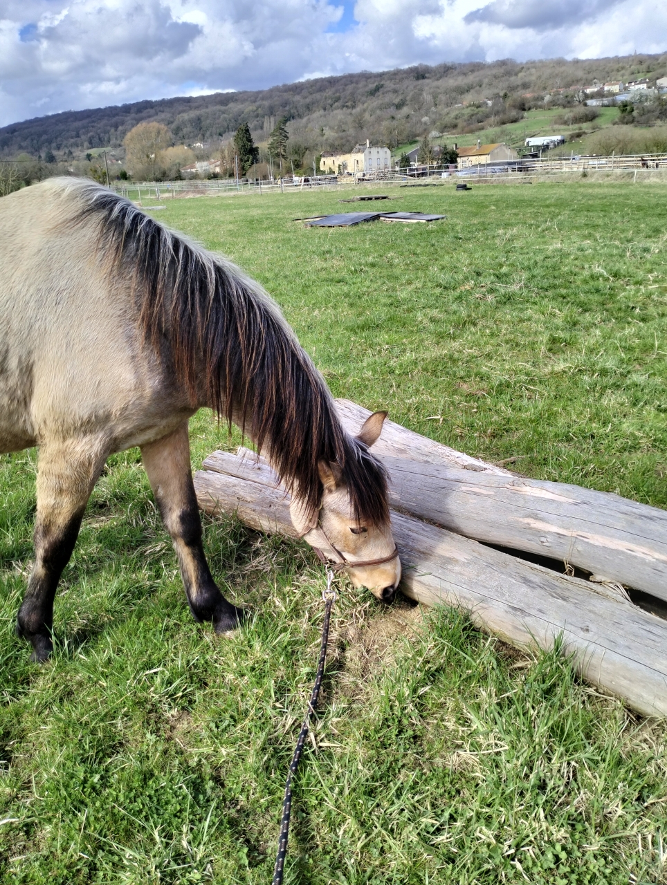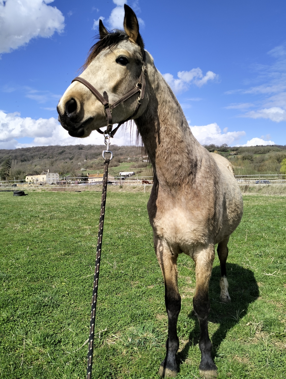 ) Grimm aussi quand il était jeune, il tendait à déborder. Le point commun des deux est d'être très extraverti, très mobile, un peu le genre à agir et réfléchir après (surtout V.Ron pour ce point) Ils m'évoquent ces chats qui adorent qu'on les grattent puis se retournent d'un coup pour griffer. Pour moi, et je me base sur les miens sans dire que c'est ça pour le tien, ça a pas mal trait à une gestion chaotique de l'énergie. J'en parle si ça peut te donner des pistes. L'un comme l'autre, ce type de comportement a cessé petit à petit. Déjà comme toi en restant calme, mais aussi en demandant très très peu de travail plus à distance. De minuscules demandes pour les avoir propres sans débordement (ça pouvait être 2 secondes, je t'envoie plus lin, et c'est tout) et très progressivement d'augmenter les demandes en arrêtant toujours avant le débordement. Aussi en ponctuant ce travail de longues pauses sans rien faire du tout (vraiment, genre 1, 2, 3 minutes sans rien faire du tout : on touche à rien, on dit rien) L'énergie, ces chevaux-là l'ont, ça ne va pas les éteindre, mais ça la recentre on pourrait dire. Surtout avec ce que tu racontes, ça m'évoque le comportement de certains entiers, et j'ai toujours que V.Ron (castré tard) n'a jamais montré son comportement d'entier que dans le TAP. au final, demander très très peu et faire de longues pauses ça l'a très bien canalisé