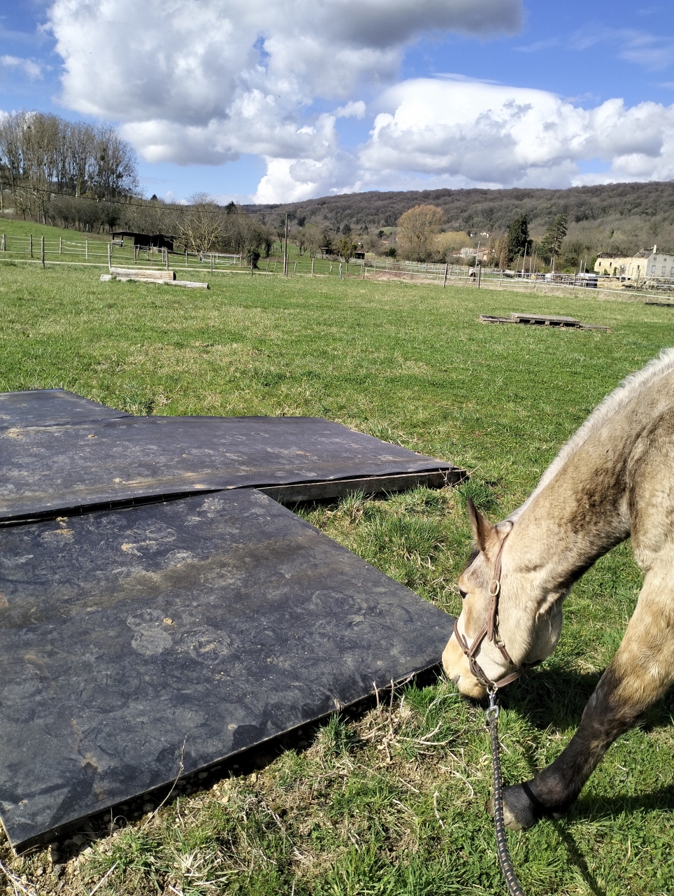 | Dire merci | Le lendemain séance a pied. J'étais pas contente de moi. ![]() Faut trouver le juste milieu, je dois travailler sur moi... Pas être trop permissive " pq c'est un poulain " ni être trop exigeante " pq c'est un poulain " bref je dois trouver le juste milieu... Et être juste, légère ( très important avec lui ! ) J'ai remarqué que qd conflit, ou même mauvaise tête de sa part, c'est que j'ai demandé un peu trop, ou trop fort... Il s'exprime c'est top, a moi d'écouter aussi et de faire des vraies phases 1! Bonne surprise qd même a la fin de la séance, il s'est roulé et j'ai pu capter le moment et donner un bonbon ( j'ai jamais réussi avec les miss, DC travailler la roulade puis coucher en R+ me fait rêver ! ) Puis ajd. Re séance en carrière avec ttes ces bon es idées en tête.. Bilan ben top . J'ai été bcp plus subtile, j'ai choisi juste deux exos : chasser hanches en conduite et marcher / arrêt/ reculer . Il a été connecté et avec une tête positive ( c'est fou chez lui on voit tt de suite son état émotionnel a sa tête ! ) DC super contente Puis il s'est roulé... Mais bcp... DC je me suis dit merde t'es pas en forme ou quoi ? Mais après on a fait une balade brouting et tt allait bien, l'entrain l'appétit les crottins... DC est ce qu'il a compris que c'était agréable de se rouler ? Qu'il a pigé aussi que je donnais un bonbon ? Ou lien avec la météo hyper chaude ? Bref a suivre ! |