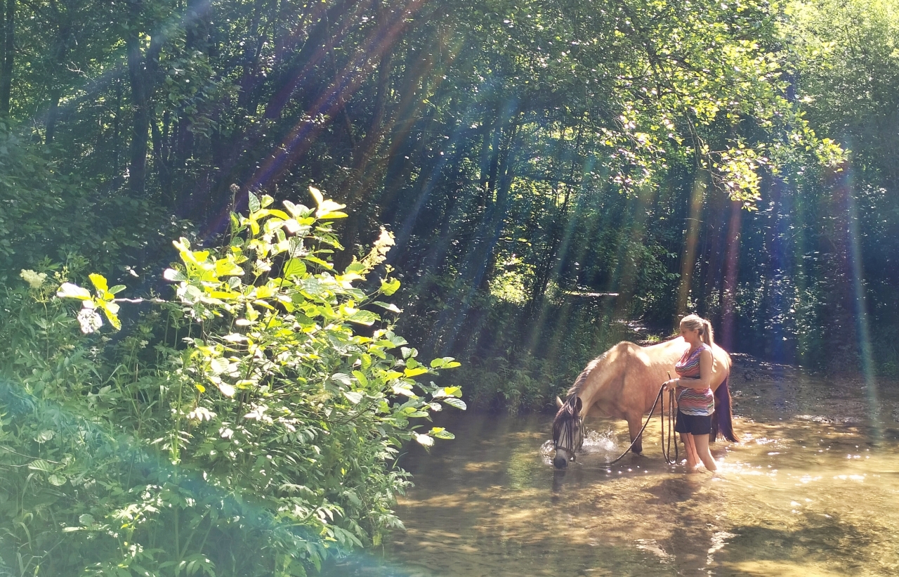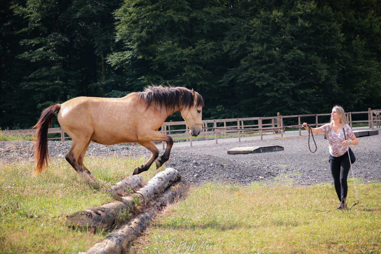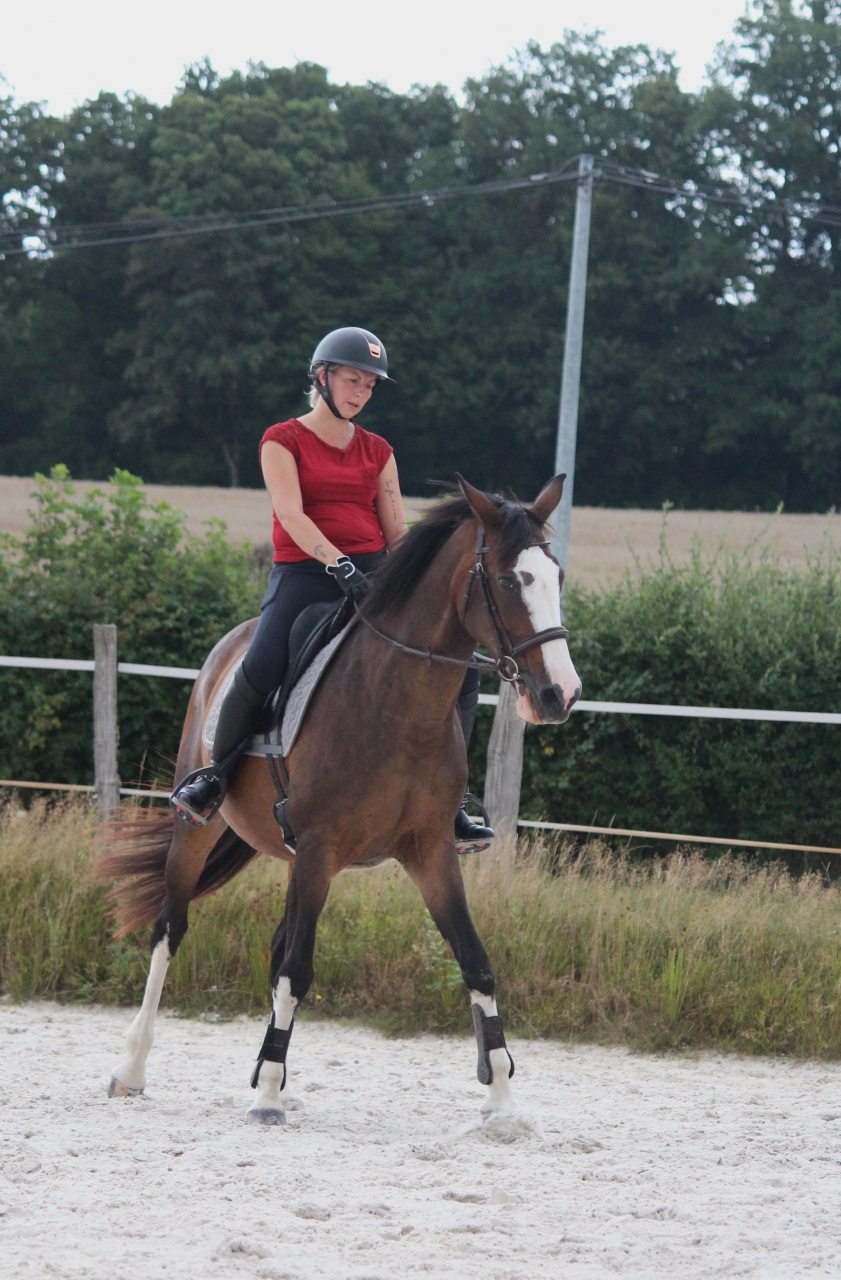 | Dire merci | Merci jrsrosey ! Le dernier jour des vacs découverte du gué. Il y a été franco, alors qu'au cours ça avait mis du temps. Deux diff majeures: la on voyait le fond et il le suivait, alors qu'au cours je l'envoyais seul.. DC chouette balade avec mon fils et ma maman, seul bémol, on a été bouffé par les taons ! ![]() Puis retour a la pension tjs aussi serein merci poney pour ces p'tites vacances !!! Ajd séance a pied, je suis le programme du ludo et j'ai fini le " deux ans " DC je voulais réviser les bases, ben elles ont bien besoin d'être révisées ! Le déplacement des épaules c'est compliqué DC séance un peu moins Bisounours que d'hab. J'y retourne demain en espèrant qu'on débloque ça Les photos de la balade ![]() ![]() Poney de famille ! ![]() Les qq jours " dans le jardin " ont aide aussi avec mon fils ! Il est devenu plus " habituel " pour lui et plus de signe d'agressivité. Ça fait plaisir ! ![]() |