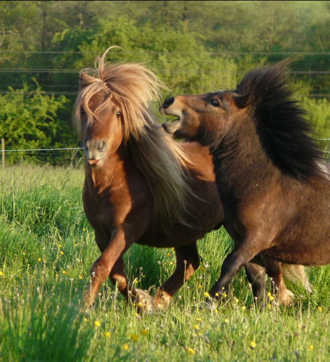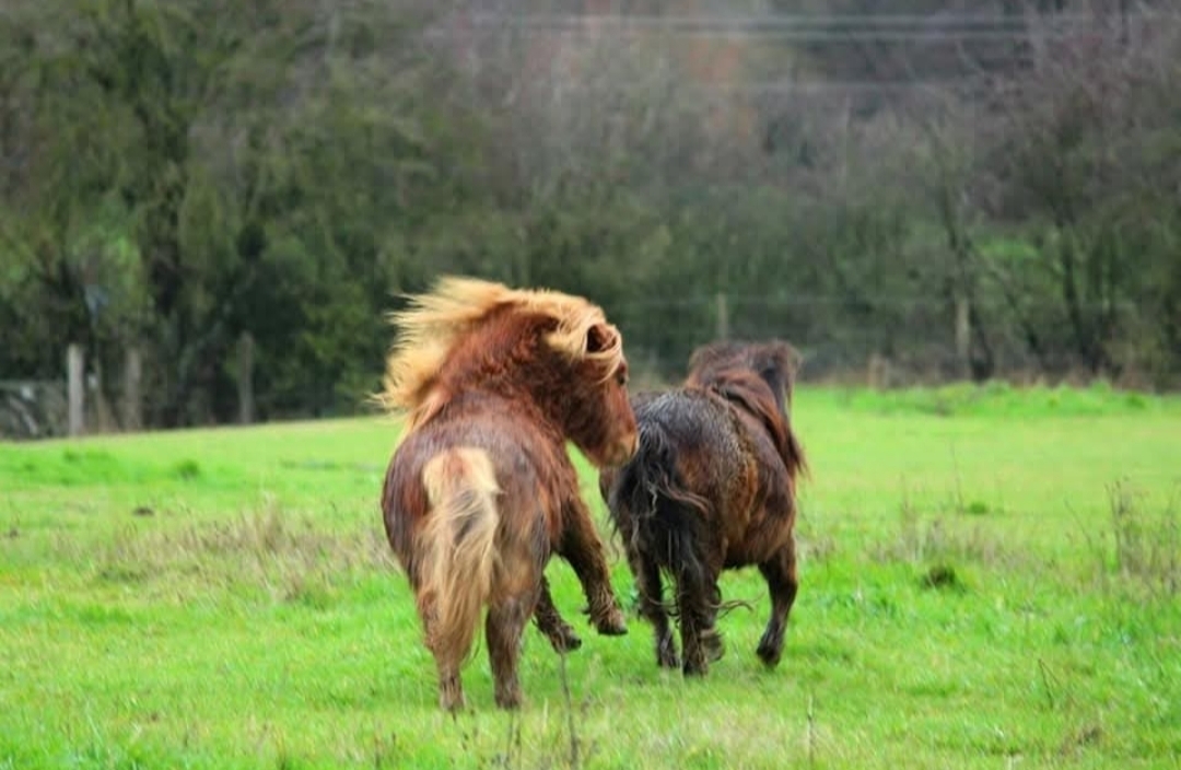 | Dire merci | J'ai un vieux pottok retraité de club ici depuis une dizaine d'années, qui souffre aussi de ce problème. La proprio du club l'a sauvé jeune cheval d'un "éleveur" peu soigneux, elle l'a acheté couché de faiblesse c'est dire. Il était donc blindé de parasites et est resté sensible du ventre, avec des épisodes kotwasser par moment qu'elle n'a pas trop si expliquer. Chez nous il est arrivé dans cet état pour sa retraite (mais c'était un mauvais hiver, humide et venteux elle avait eu du mal à le garder en état au pré, la concurrence avec les autres ne lui allait pas, c'est d'ailleurs pour ça qu'elle lui cherchait une maison. Il avait également des poux a ce moment, ce qui pour moi est un signe de faiblesse immunitaire ou une période de crise - quand on ne parle pas d'animaux maltraités où tout le monde est pourri de parasites) Il a passé quelques mois avec crottins mous + expulsion de liquide mais ça s'est amélioré au fur et à mesure qu'il trouvait sa place et s'habituait au lieu. Il était a ce moment avec un âne pour compagnon. Finalement ses crottins sont redevenus normaux. L'année suivante, je l'ai mis avec le troupeau des autres et ça a redeclenché le problème, encore plus l'hiver. Du coup j'ai l'impression que chez lui, cela vient entre autre du stress notamment autour de la ressource alimentaire. Il est psychotique quand on lui donne son seau de grain, à gratter du pied tellement fort qu'il casse a peu prés tous les contenants et laboure autour de lui. Il a sinon un caractère assez solitaire, et est peu expressif. Bref, de ce que j'observe depuis le temps qu'il est chez nous c'est qu'il déclenche ces crises de kotwasser après un changement de compagnons de pré notamment la présence de nos deux alezans débiles ou qu'il pense se retrouver en concurrence alimentaire (serait ce donc un "souvenir" de sa jeunesse en mauvaises conditions?). En tout cas, a présent il va rester avec son âne et il est nourri en paddock car il n'a plus de dents et a droit à sa soupe (luzerne betterave). Les crottins sont ok, il a trente ans donc si ce système lui va , je ne chercherai plus a le mettre avec les autres. |