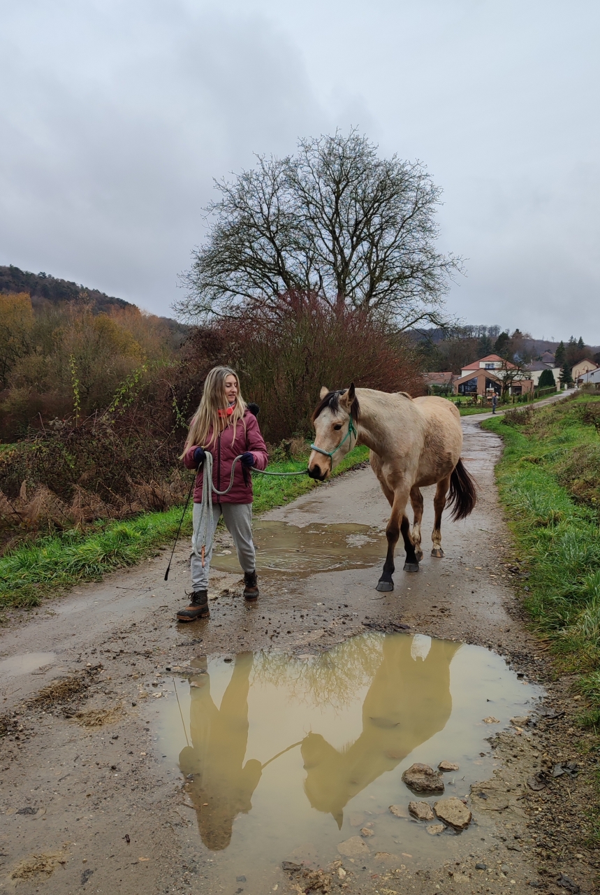 | Dire merci | Kzeel : merci pour ta réponse, t'es vraiment une encyclopédie ![]() En effet c'est un syndrome pas bien exploré et multifactoriel dc difficile à gérer simplement Nobel reste un jeune, DC le côté parasito serait a explorer plus amplement je pense. Je vais lui faire des copros a un moment pour checker ça ! Après le stress... Oui clairement ce peut. Nobel n'est pas un stressé de base mais ça a commencé lors de son déménagement....et même si j'aime bien le mode de vie en écurie active ils sont une vingtaine, DC clairement xa doit générer du stress ! Le truc un peu bizarre c'est qu'un autre cheval ( vieux lui ) qui a ça depuis des années a redeclenché son kotwasser la cet automne pile en même temps... DC les vers ? Le stress ? Ça j'y crois pas car c'était avant la fermeture des prés, DC pas de raison de stresser bizarrement pile en même temps..ou d'autres paramètres extérieurs, type humidité ( sol et air ) variation de températures... Ou que sais je ! Et ça je peux rien y faire ! DC copro je pense avant le printemps, et déjà la ses compléments et le vermi ont aidé car depuis une semaine il n'a quasi plus rien. Cool ! Mais tjs ballonné... Ça aussi c'est fou tt l'hiver dernier il était ballonné mais pas l'été... C'est pas logique... Bref ! Neli ah oui je pourrais me renseigner jsuis pas du tt au taquet sur les ema Jrsrosey ahhhh ben cool si ça t'a permis de mettre un nom sur ce syndrome !!! En effet je pense qu'on peut aider nous ( réduire le stress, vermifugagion, compléments, alim...) mais qu'il y a des facteurs extérieurs et ça... Merci pour ton témoignage dilou ! Ici après trois visites ou ma mini crevette ne m'a rien laissé faire ( j'étais deg mdr ! ) balade en portage avec une copine et son cheval. C'était chouette, Nobel cool comme d'hab, mais jvais devoir faire gaffe l'hiver car il a le sang qui revient avec le froid... DC marcher ouais, mais si on l'écoutait il aimerait parfois passer la seconde ![]() |
