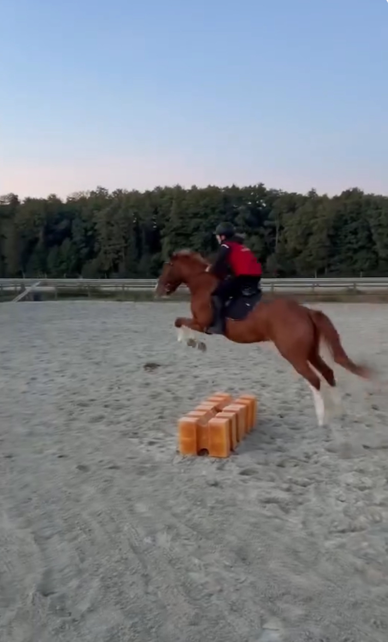 | Dire merci | L'obstacle, il a encore du mal à doser, mais je ne saute jamais avec lui, c'est ma petite cavalière qui saute avec lui, elle n'a peur de rien. Elle a tout fait, enne l'enmène parfois au centre équestre pour des cours et des stages. |