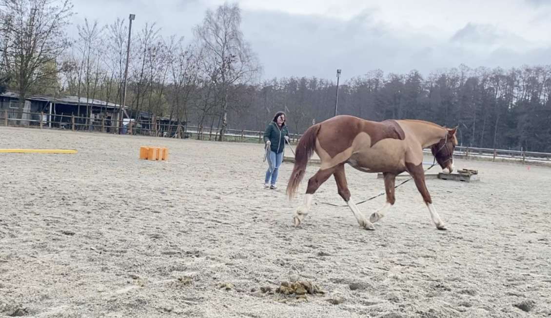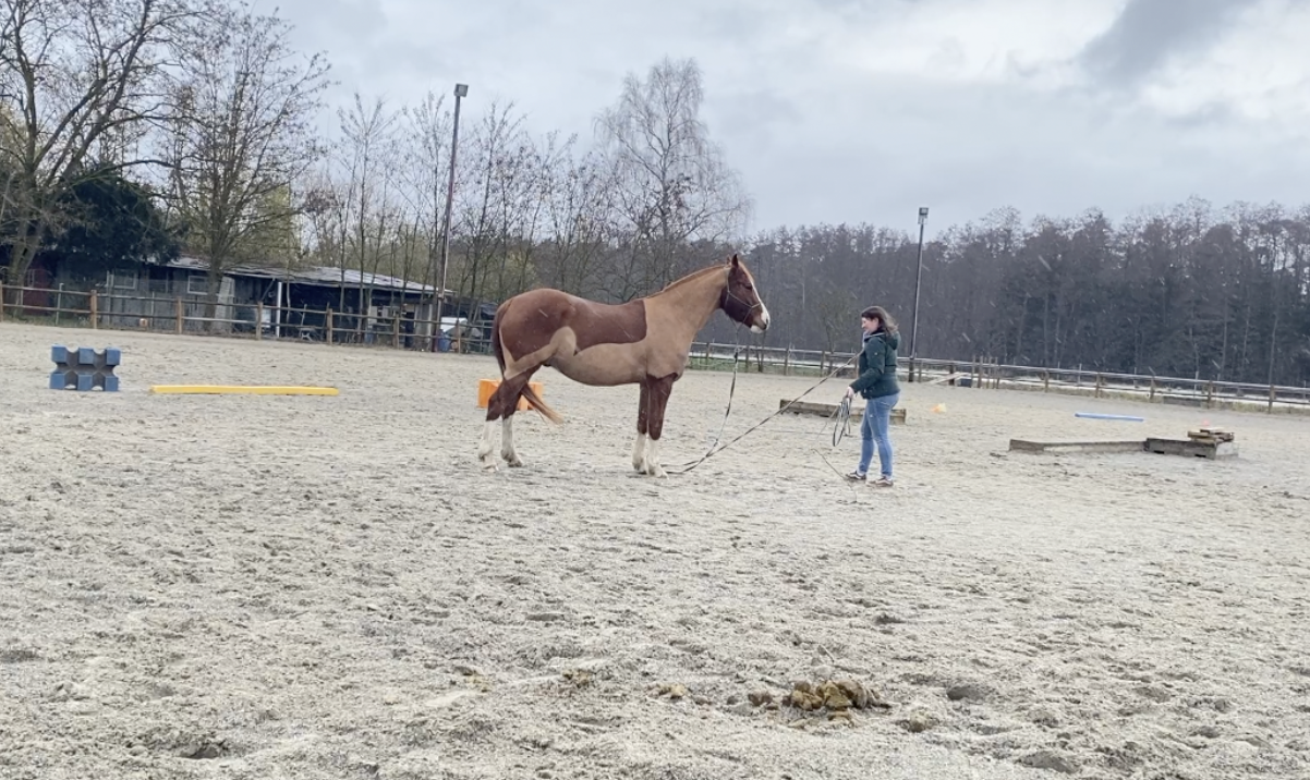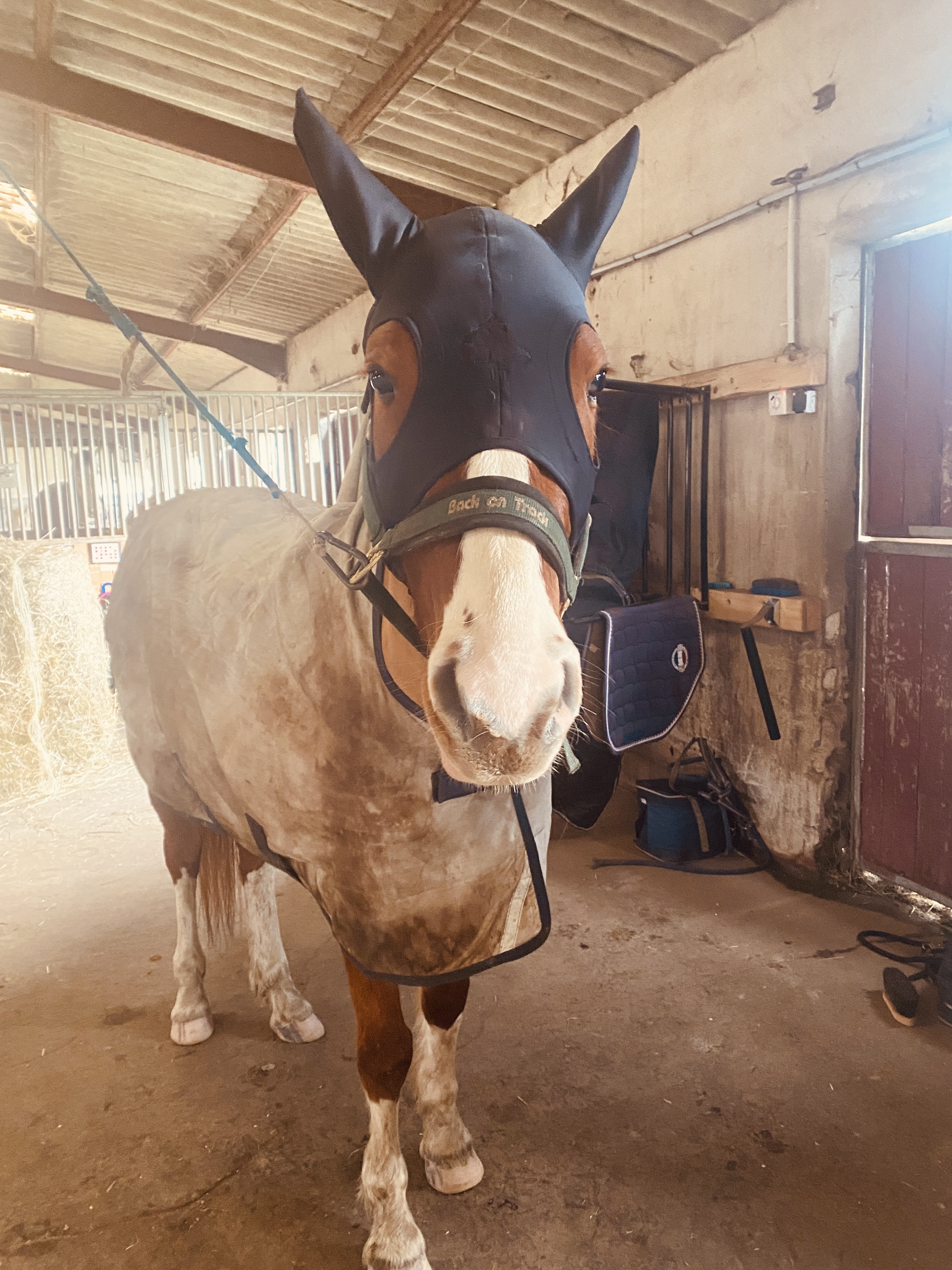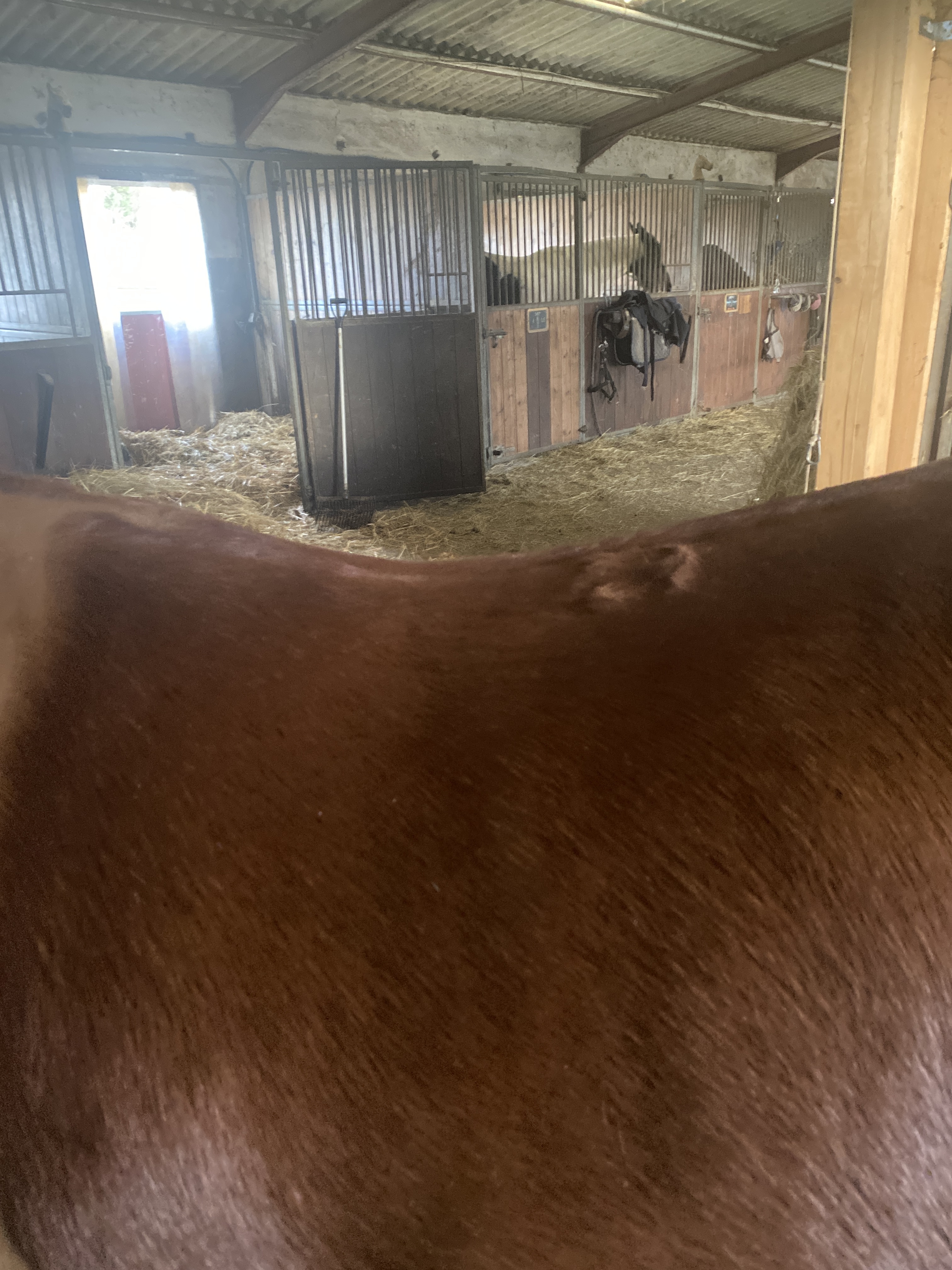 Actuellement je suis très bien dans ma pension mais il n'y a pas de manège (hormis le rond de longe), mais je vais visiter une écurie avec manège où les conditions de vie sont assez proches de ce qu'on a pour le moment, à savoir une écurie ouverte. La carrière est plus petite mais du coup il y a un manège qui vient d'être construit et j'avoue que bosser sous la pluie, ça me démotive.