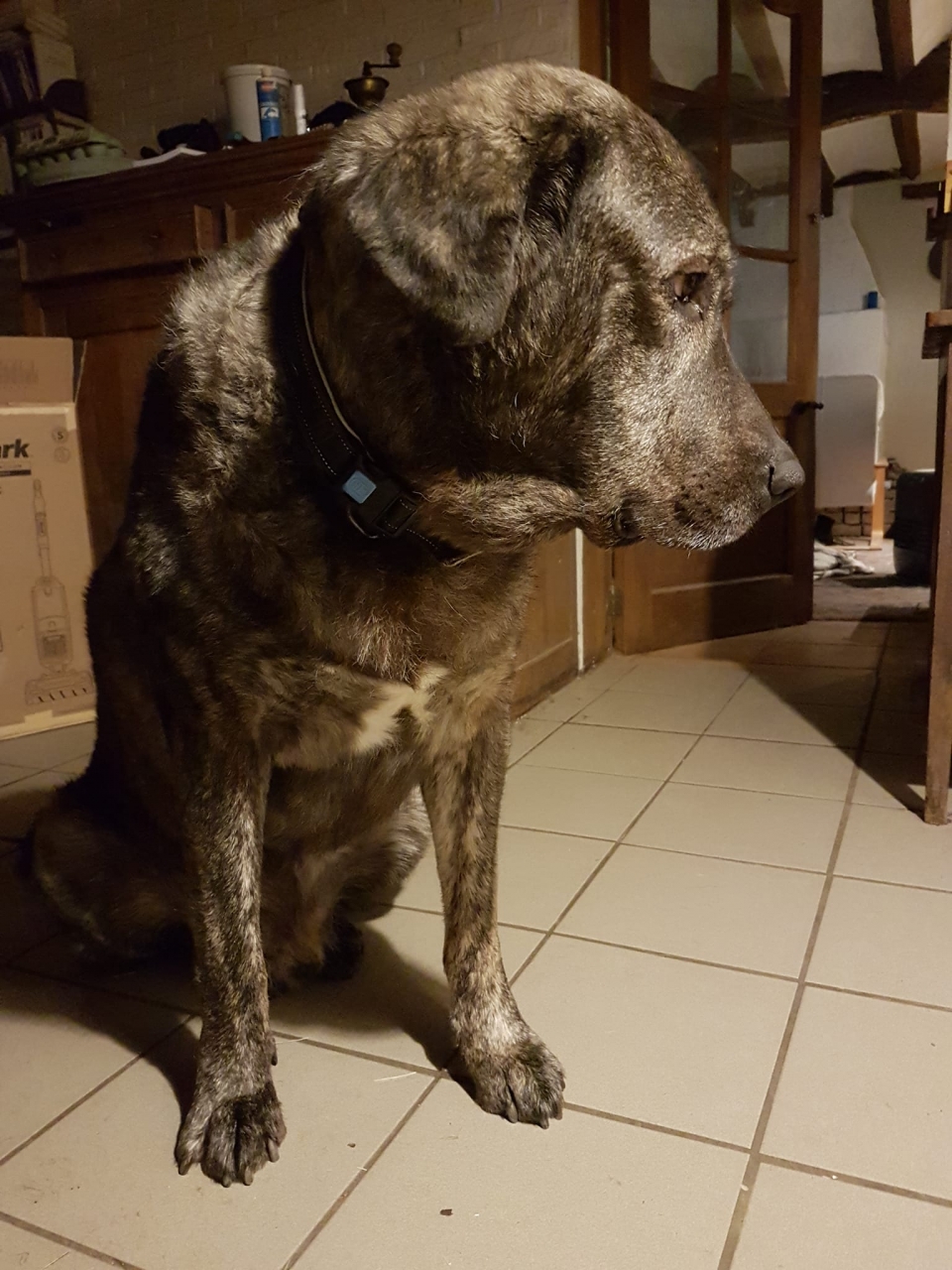 | Dire merci | et ça c'est la tête du Mastin qui refuse de sortir faire pipi pcq il fait noir et qu'il pleut Le chien d'extérieur rustique ! Y'a pas a dire, une fois qu'il connaisse le confort, ces chiens (des rues surtout) ça devient de vraies princesses (le même a la maison, une amie a aussi la même chose avec son berger roumain...) Mais on les aime quand même |