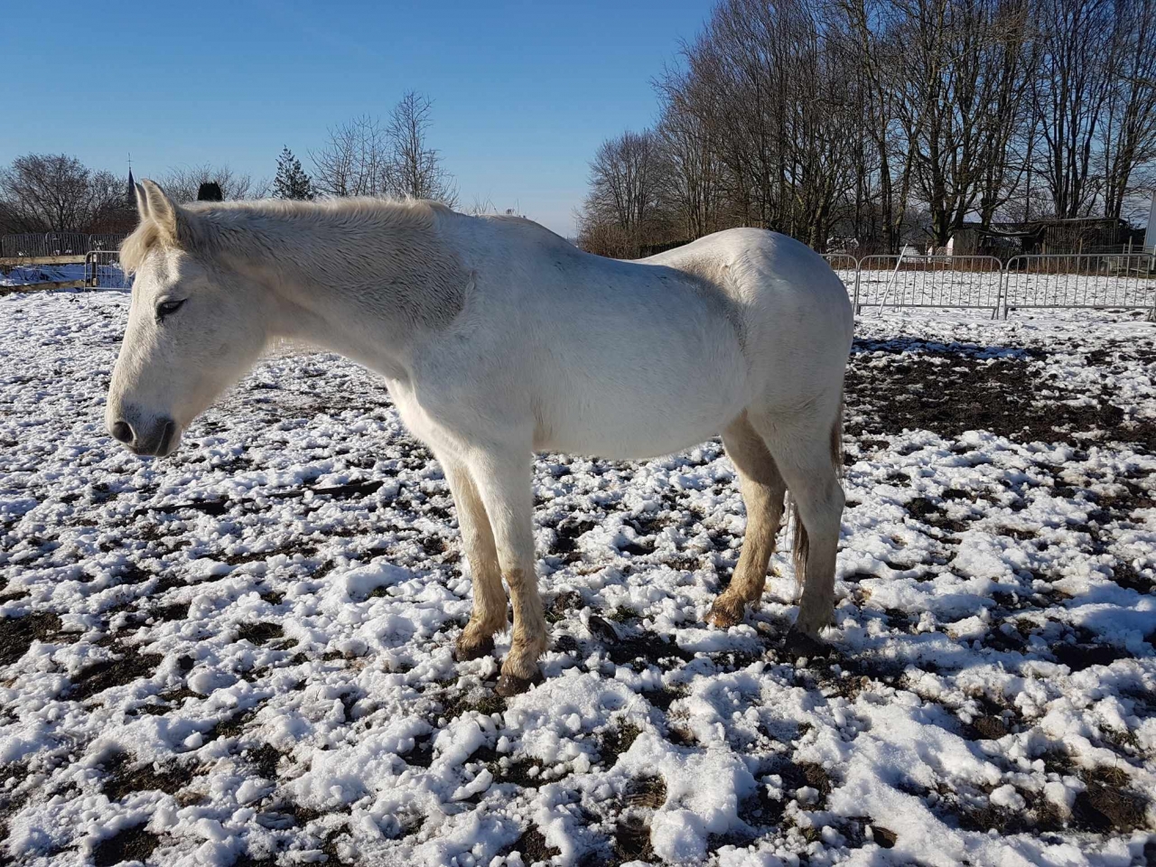DéconnectéDire merci | ça fait un temps infini qu'elle me rend chèvre , c'est sa marque de fabrique, le sens profond qu'elle a décidé de donner à sa vie ... avec cette bonne tête de murène pcq il y avait un chien ou un poney à moins de 5m d'elle. Moi j'ai droit aux oreilles en avant pour une petite gratouille. Elle a tjs un peu de mal l'hiver avec son emphysème mais ça va, sa nouvelle couverture Bühler lui va comme un gant (ça n'était jamais arrivé même avec des marques bcp plus chères) et son poids se maintient, je n'en demande pas plus |