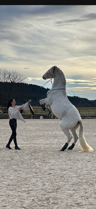 | Dire merci | Intéressant tes observations k.zel! Bon sinon ça y est les 2 espagnols sont arrivés sur leur lieu de show. Complètement levretté mais secs au débarquement, très étrange en général ils transpirent mais ne remontent pas le bide... ma foi ils étaient calmes quand même, direct le nez dans le foin, très sage aux toilettages et à la découverte de la carrière assez regardante. ![]() Et ma voiture de Gitane, j'ai pas la photo mais j'avais carrément la garrocha accroché le long à droite n'importe quoi ![]() Demain je profite d'être dans une super carrière en bord sol avec une excellente monitrice pour prendre un cours de saut avec Suerte on va rire. Et dimanche let s go for the show ! Premier de Magico en extérieur, et premier en extérieur sans Océan ni Kenny... ca fait bizarre de se retrouver là, 15 ans après mon tout premier spectacle qui m'a donné le virus, avec un autre duo de bai et de gris.. La petite fille qui vit encore en moi est toute émue! Message édité le 19/12/25 à 16:33 |