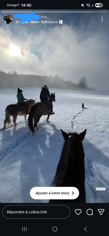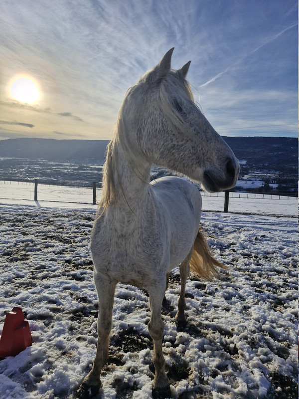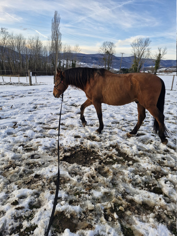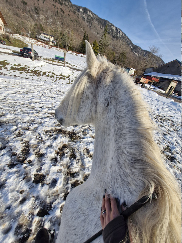 | Dire merci | Bon Kenny abcès re-percé, en couronne bien comme il faut. Il a l'air de boiter encore un peu au trot mais ca me semble normal. Promenade dans la neige ce matin. J'ai du mal à monter descendre mais une fois à cheval ca va à peu près. Je n'ai fais qu'au pas pr le moment. ![]() ![]() Les paysages étaient assez dingues. Et sinon... mon joli arc en ciel sur la jambe ![]() |
