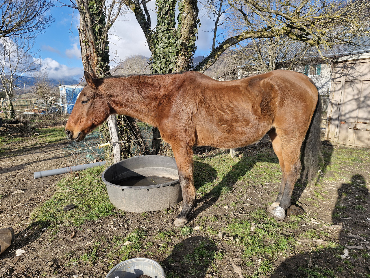 | Dire merci | Julie j'ai rdv tel avec sa veto Lundi pour parler de ça effectivement mais je crois pas qu'elle soit optimiste si ca récidive. Takhan c'est exactement ca... y a qu'ici où j'ai l'impression d'être comprise... Je me sens bien seule dans tout ca au quotidien, ma mère (je rappelle qu'il a ete avant tout notre cheval de famille) n'est meme pas venu le voir de la semaine... bref... Tjs un nez un peu humide ajd mais il m'a coursé le chien pleine bille galop ce matin, cul en l'air antérieurs frappés je l'avais pas vu mettre une chasse aux chiens comme ça depuis un moment |