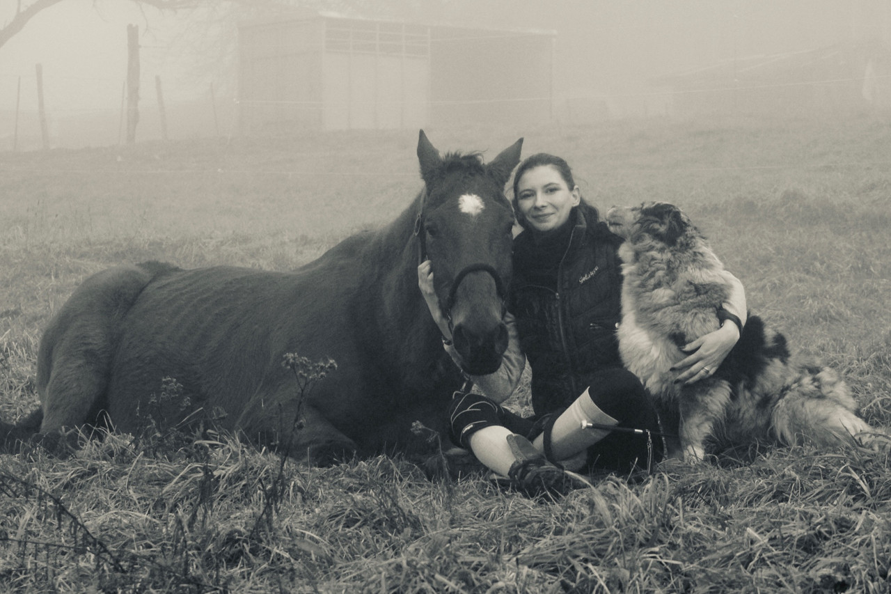 | Dire merci | Mon croisé de caniche aimait bien faire un tour à poney, et je pense que ça avait un lien avec son envie/besoin d'être toujours en hauteur : il montait sur les tables aussi, et les plans de travail, ça va que c'était un petit gabarit moins de 10 kilos (bon, quand j'ai eu la husky et que c'était un chat aussi, ça a été autre chose, mais les chevaux ne l'intéressait pas au moins) C'est chouette d'avoir comme ça une connivence cheval/chien. Ici, je n'ai jamais eu ça, plutôt une indifférence mutuelle, à part mes deux ron, là. (souvenir de V.Ron attrapant la husky par le dos pour la jeter en l'air ou Baron pétant un croc de ma border d'un coup de pied)Tu fais quelque chose en particulier pour que ta chienne s’intéresse aux chevaux, ou c'est plus parce qu'elle est partante pour bosser, de base, qu'elle est aussi partante pour bosser avec les chevaux ? |