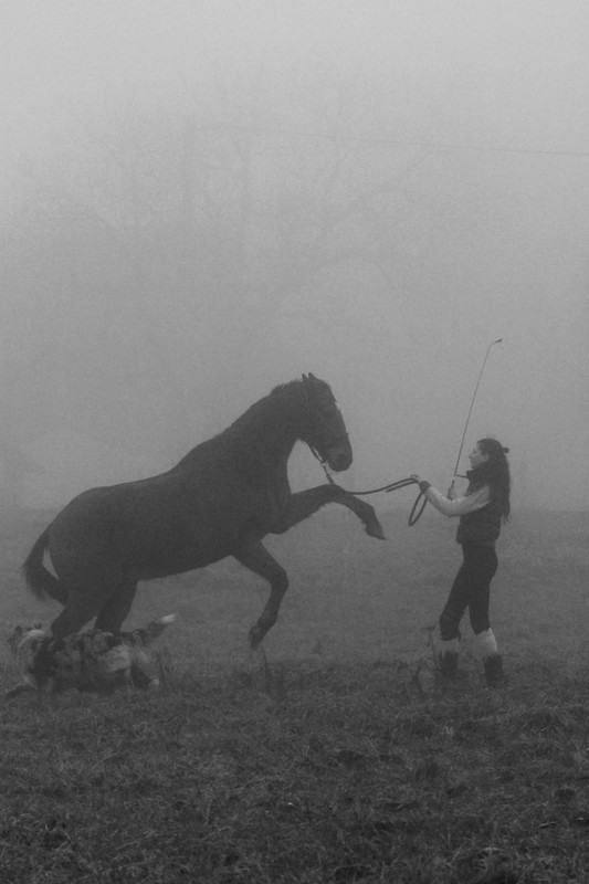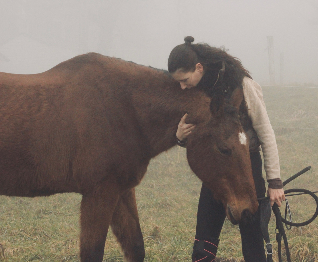 | Dire merci | Une amie m'a offert de son temps hier pour figer quelques moments avec Kenny et Pandora. Une matinée brumeuse, il aura joué le jeu parfaitement, m'offrant de longs moments couché et de bien jolis cabrés également. ![]() Je pense que toute sa vie il aura ce regard de bébé, ses yeux d'une douceur et d'une profondeur rare. Je me suis tant battue pour y remettre l'étincelle de vie dans ce regard, on est passé devant tant de difficultés pour y arriver... ![]() Rien que de tolérer la chienne près de lui est une victoire en soit. ![]() Mon poney de guerre, moins vif qu'avant mais toujours vaillant. |