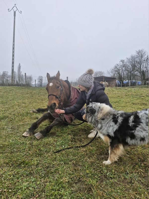 | Dire merci | Je compatis, j'ai vécu cet automne la perte de ma jument de vie qui a été compliquée et maintenant quelle est partie je me rends compte de la charge mentale que ça a représenté. Zéro regret mais j'ai l'impression d'avoir des trous dans la tête là où avant il y avait Elle et de ne pas encore savoir les combler. (Enfin si. J'ai un vieux pottok sans dents a qui il faut faire des soupes qui a pris le relais mais c'est pas la même chose bien sûr). J'ai encore parfois le réflexe de la chercher du regard en arrivant au parc et ça me fait un choc de me dire que ce n'est plus la peine. En tout cas entre les photos et ce que tu dis de lui on sent bien votre amour et ça restera votre belle histoire |