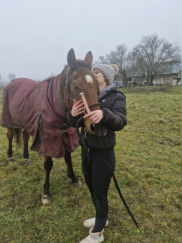 | Dire merci | C'est clair que ton joli gris me fait souvent penser aussi à mon Kenny, comme tant des grands Chevaux de ce forum. Ils nous broient autant qu'ils nous aiment. Papy post 24h après arrêt des antibios roule comme un charme. Pas de temp, pas d'écoulement sauf un résidu blanchâtre. Je me permets toujours pas d'optimisme mais on est quand meme dans le meilleur scénario. Sa veto et son dentiste se sont appelé ajd j'attends des nouvelles. Il a une forme olympique, encore ce matin il est arrivé pleine bille pour son seau et a failli se rétamer dans la gadoue. Je respire qd même mieux même si je suis pas encore soulagée. Je sais que ca peut revenir n'importe quand n'importe quand... |