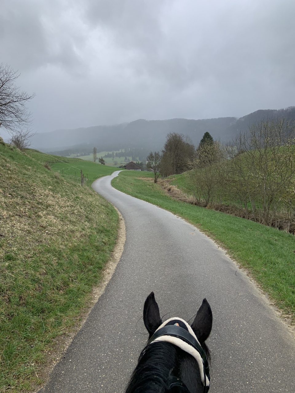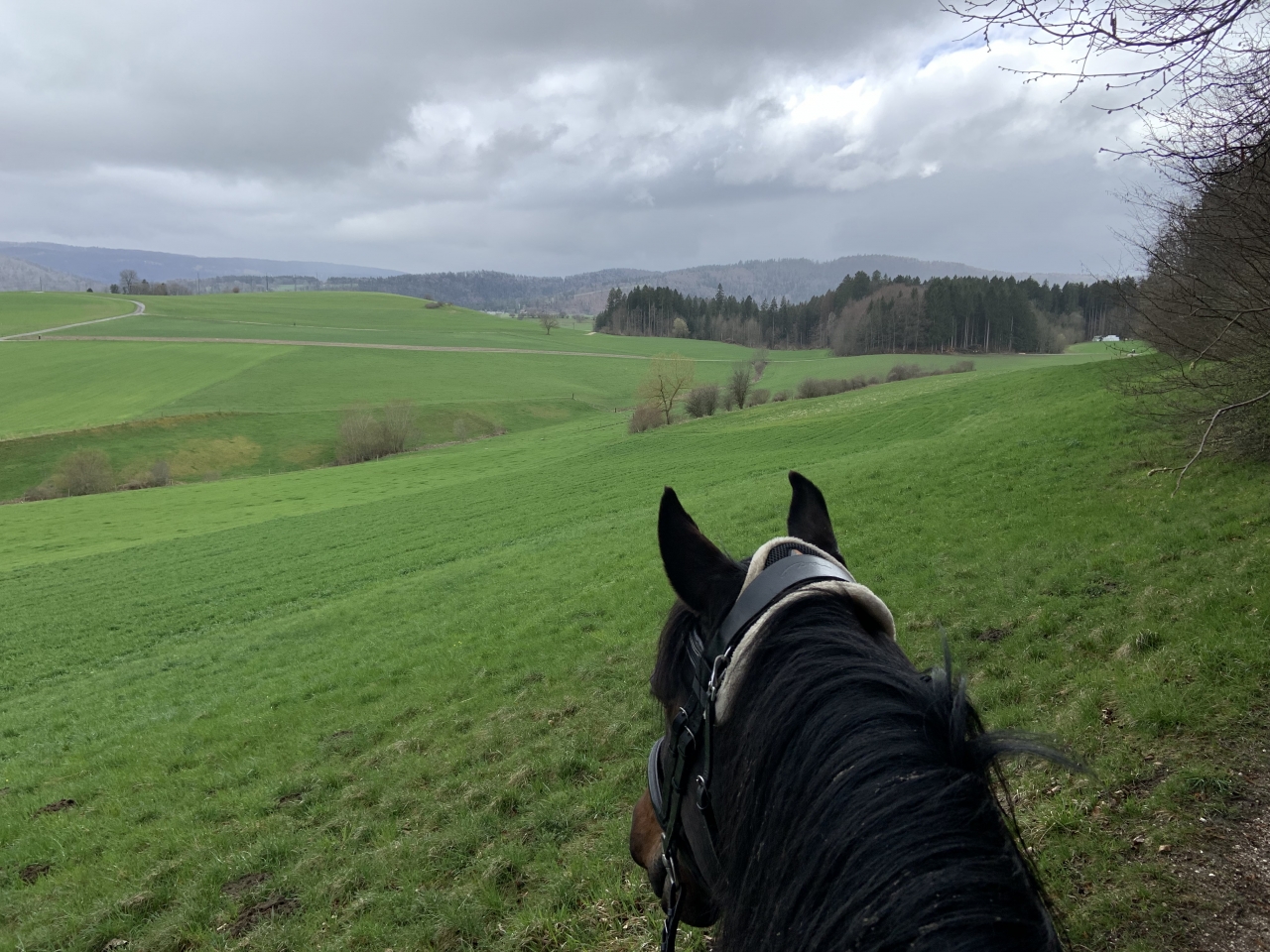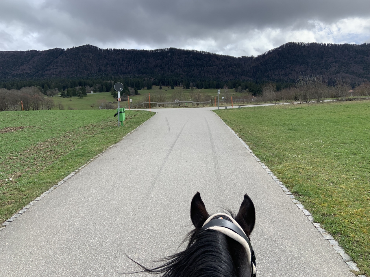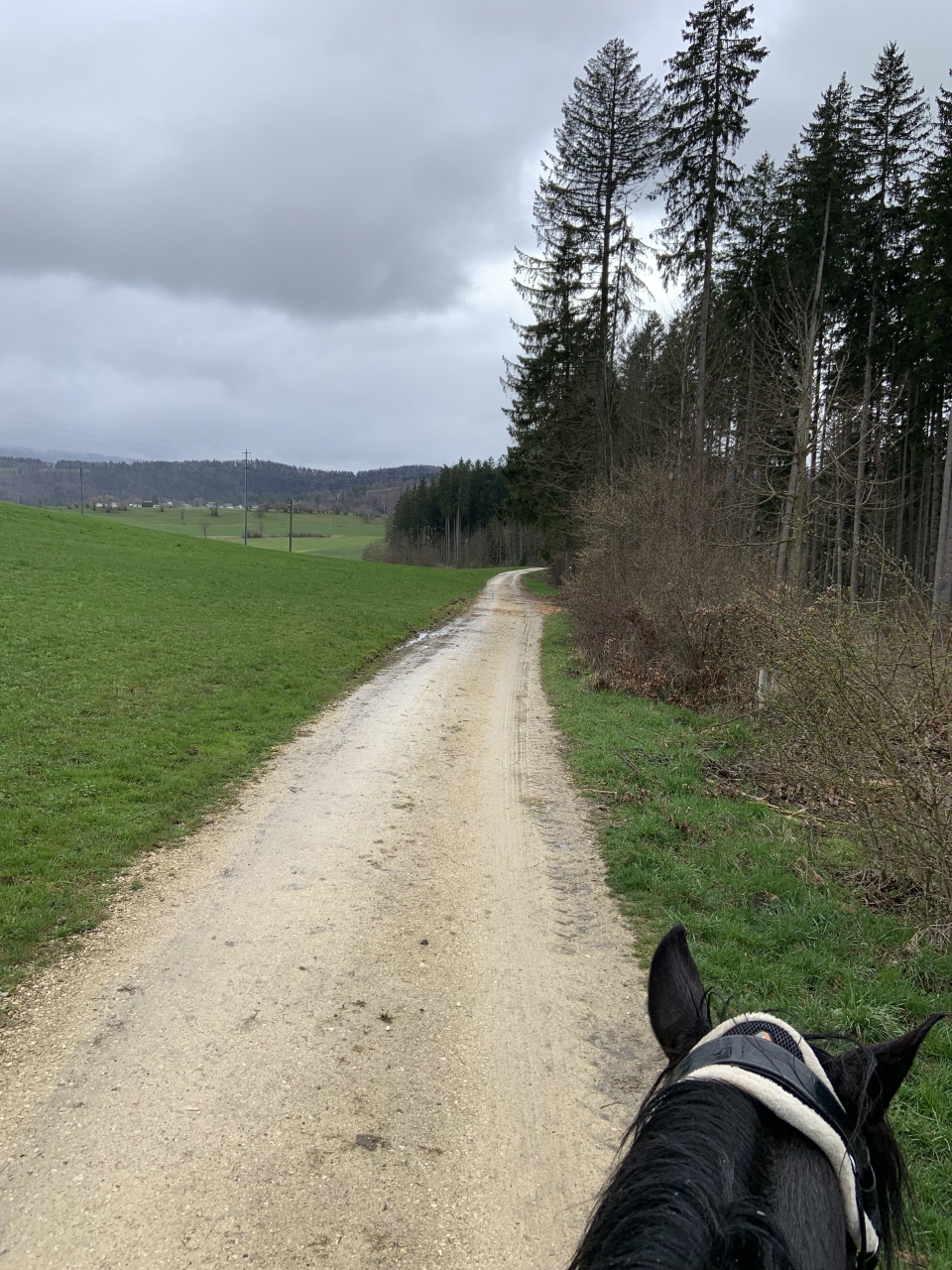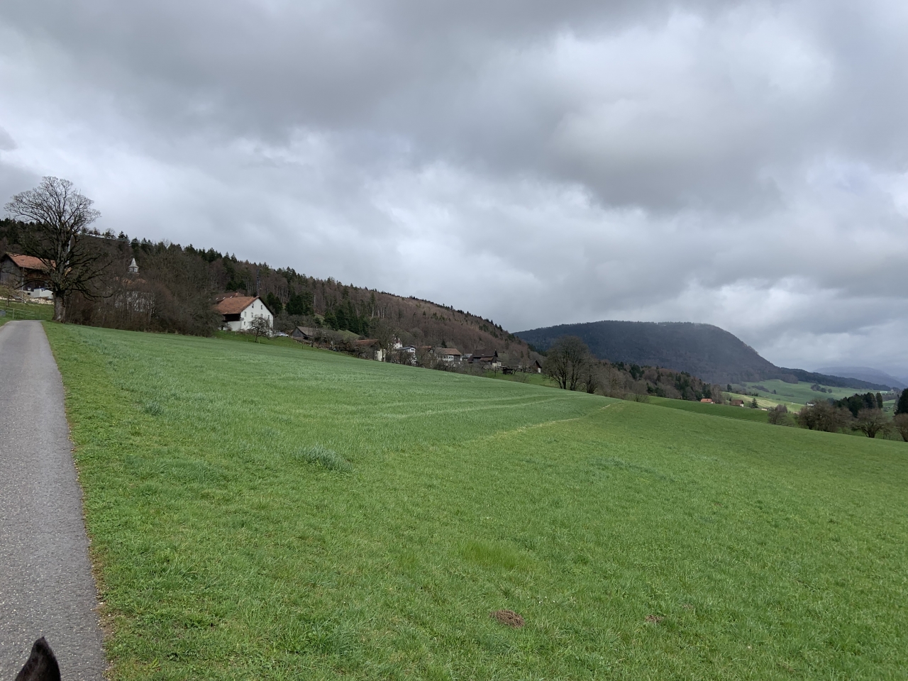 | Dire merci | Dernier bout de descente avant de sortir de la foret, là par contre ça se fait à pied.![]() C'est par là ? ![]() Il ne perd jamais le nord, miam le sapin ![]() Arrivés en bas, un arbre est tombé en travers du chemin, impossible de passer, on doit remonter un bout et faire un détour. On rejoint la route goudronnée qui rejoint la métairie sur la montagne. Elle est praticable à cheval mais il y a du trafic, c'est lourd. ![]() Vue sur le village où est située l'écurie. Au fond, ça mène aux Franches-Montagnes. Nous sommes aussi dans le berceau de la race, il y a pas mal de petits élevages dans le coin même si la majorité est produite pour la viande. ![]() |