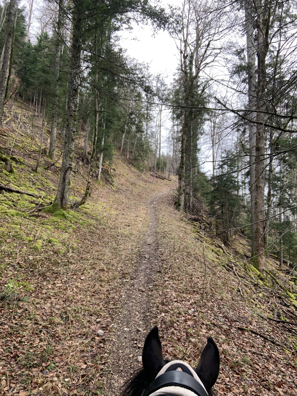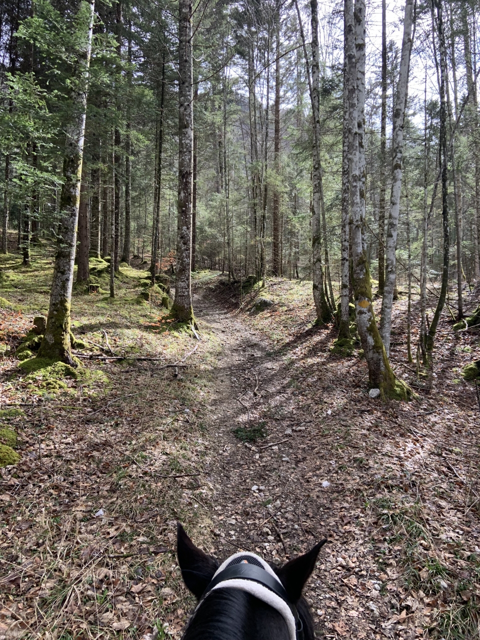 | Dire merci | On arrive à l'entrée de la foret, ça commence à vraiment grimper![]() En vrai, mon cheval n'a qu'un seul but ![]() Le téléphone écrase pas mal les perspectives, c'est plus raide en réalité que l'impression donnée par la photo. ![]() Ce sont essentiellement des sentiers creusés dans la pente, il ne faut pas avoir le vertige. ![]() Mais entre les arbres, in a des points de vue sur la vallée et la montagne en face ![]() Le pire c'est que mon cheval adore marcher tout au bord du chemin (celui vers le vide bien sûr) ![]() Vue de la foret en dessus de nous (en dessous c'est la même sauf qu'il y a 50 m de chute. Habitat parfait pour le lynx, qu'on ne voit que peu souvent malheureusement. ![]() |