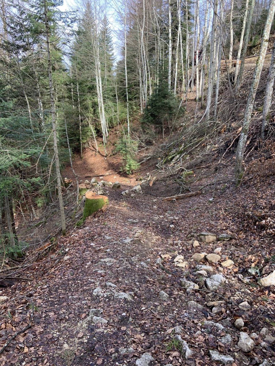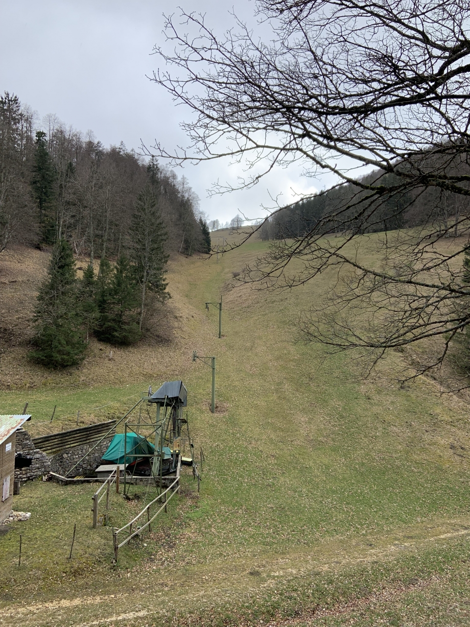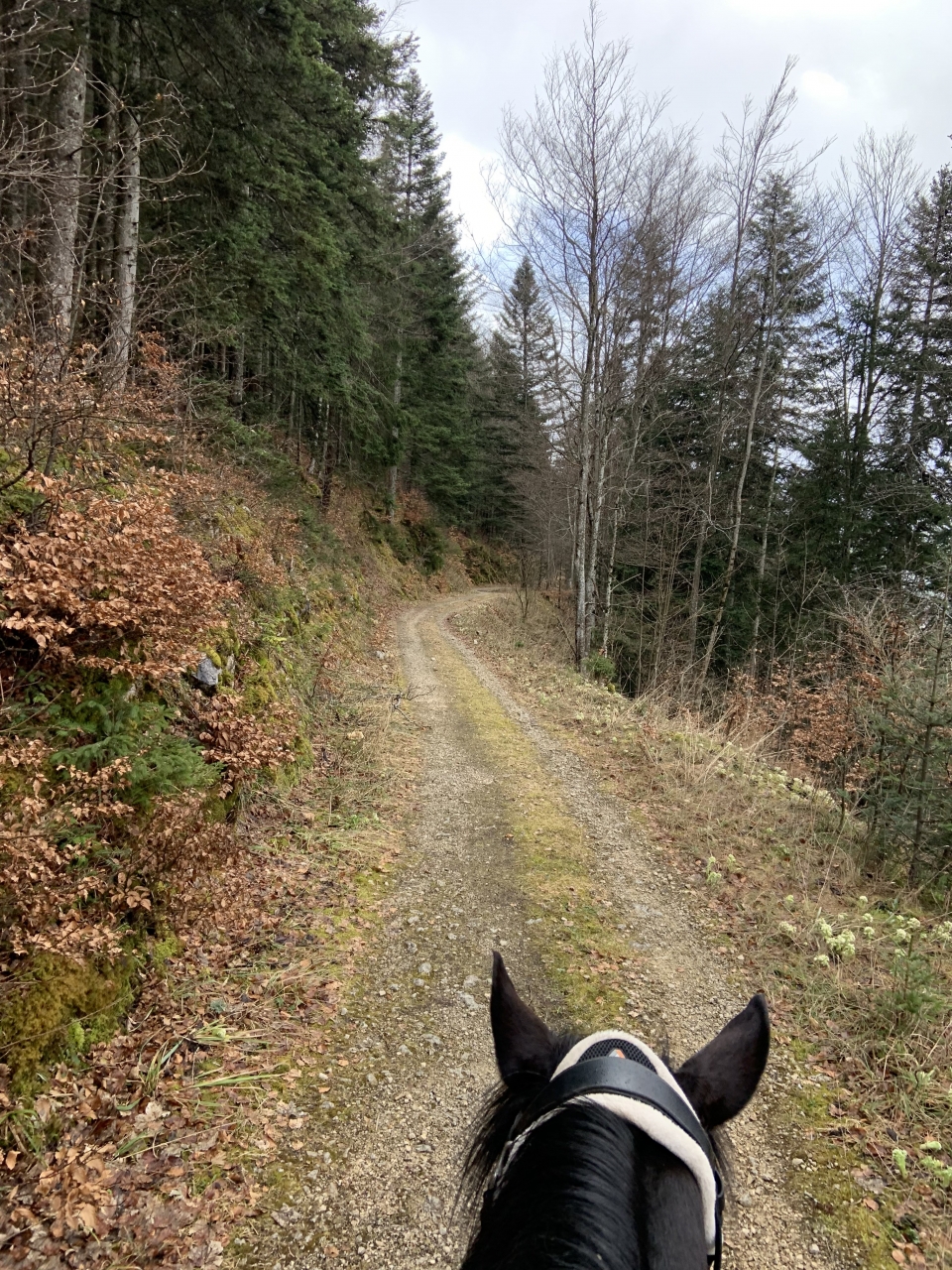 | Dire merci | On arrive en haut du chemin, environ aux 3/4 de la montagne. ![]() On prend un chemin plus large pour redescendre ![]() On doit faire le tour d'une gorge pour rejoindre le chemin qu'on aperçoit entre les arbres en bas. On ne dirait pas, mais c'est très raide et même à pied, il faut être aguerri pour passer par là ![]() Au bout du chemin, on sort dans un pâturage où se trouve un téléski. Il est encore en fonction pour peu qu'il neige. Malheureusement on est une région très touchée par le réchauffement climatique et elle devient rare. ![]() On retourne dans la foret. Ce chemin est sympa car il descend en pente douce et on peut rester à cheval ![]() ![]() On a aussi de la vue depuis ici ![]() |