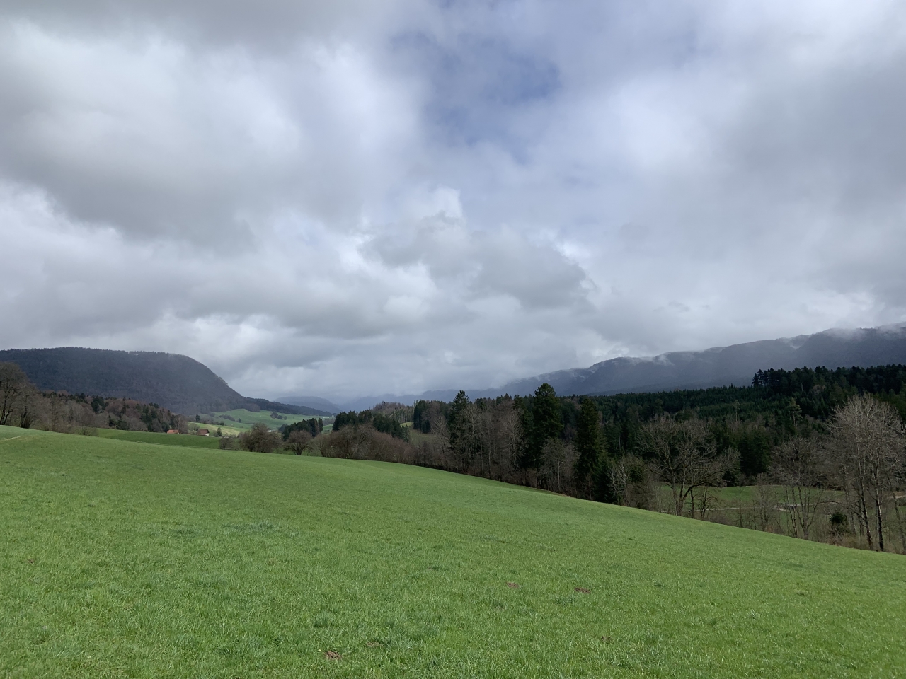 | Dire merci | Samedi après-midi, entre deux averses, on part pour 2,5 h. Vue de l'écurie au loin, ce sont les bâtiments au pied des immeubles ![]() On va crapahuter dans la montagne en face ![]() Pour y arriver, on rejoint le village voisin (on est passés devant chez Gilles Surchat pour ceux qui ont la référence ). Avec vue sur la vallée, notre objectif est sur notre droite. ![]() Il nous arrive aussi d'aller se promener dans la montagne qui est en face. Pour atteindre la foret, on doit traverser l'autoroute. ![]() Ensuite il y a un bout de pâturage typiquement jurassien ![]() |