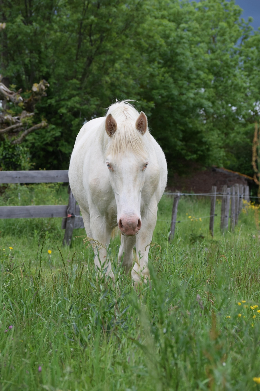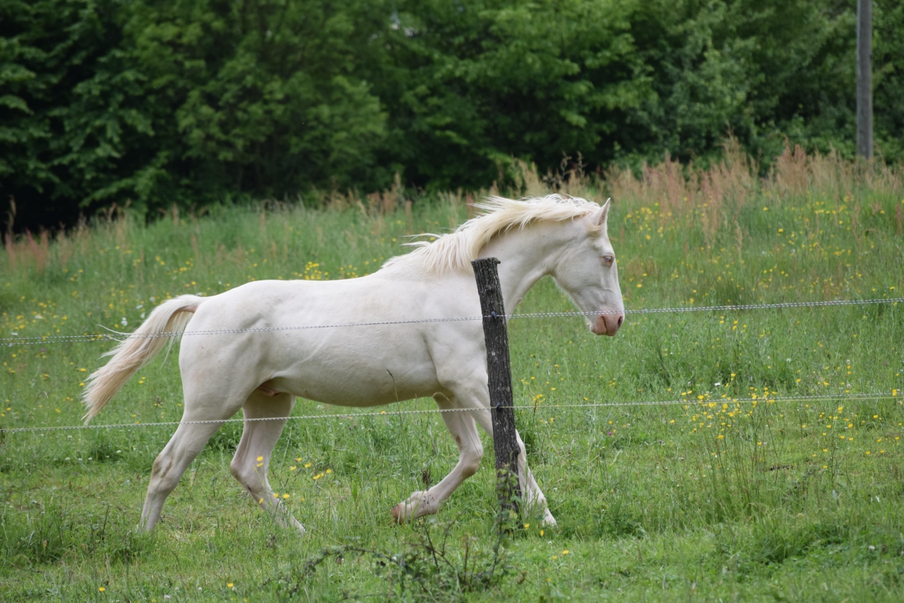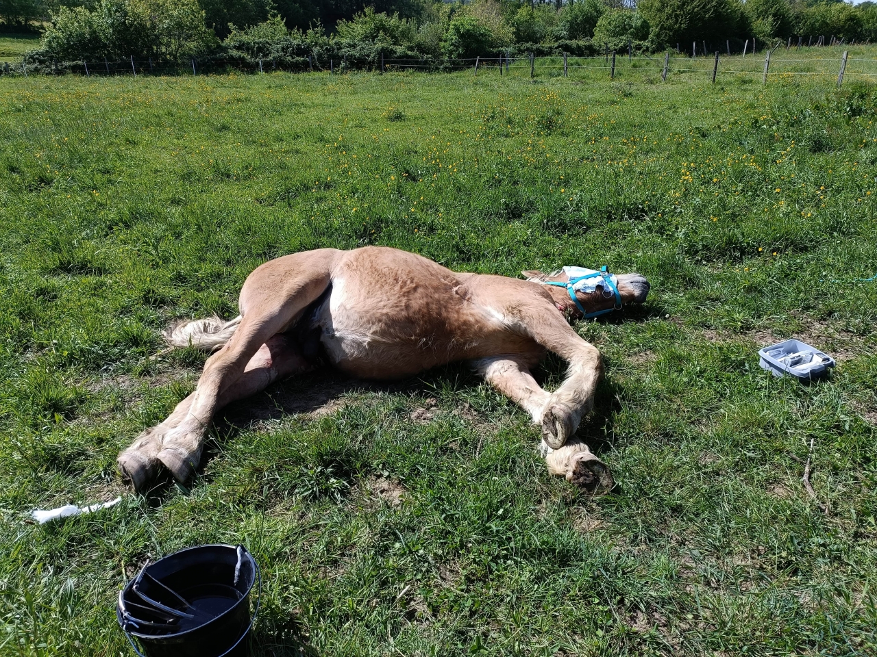 | Dire merci | C'est une crème, il est très drôle Non, ça daterait d'avant. L'ulcère daterait de plusieurs semaines ? Ya des risques de MCOA chez le Comtois, je le savais pour les silver, Maxou étant bien "jaune" et les parents aussi, je ne me suis inquiétée. J'aurais dû, mais bon si je rappelle l'éleveur (même si je voulais échanger le poulain) il partirait à la benne en Italie. Après, ça peut être traumatique cet ulcère, il dormait la tête dans le seul buisson de ronces de son paddock ce matin (après avoir éclaté son abreuvoir) |