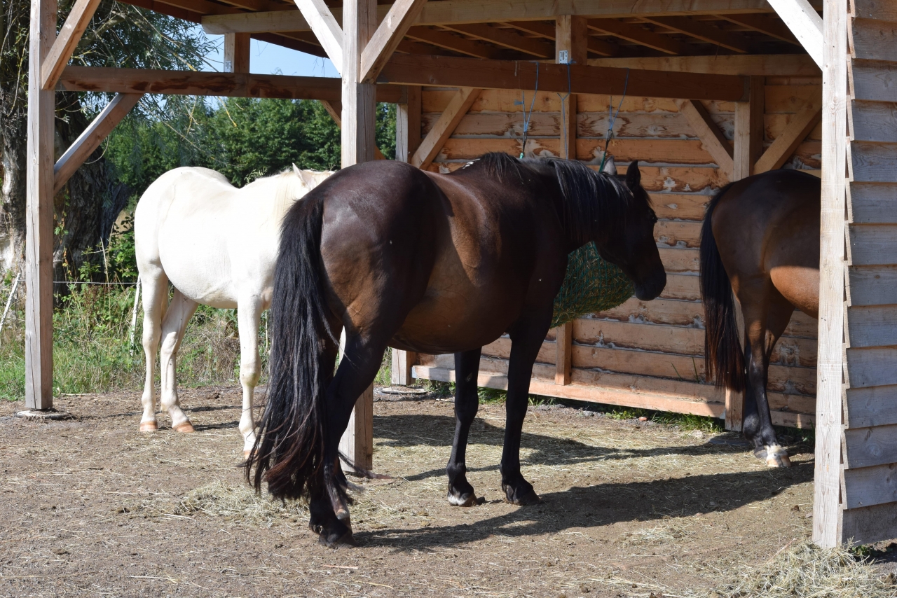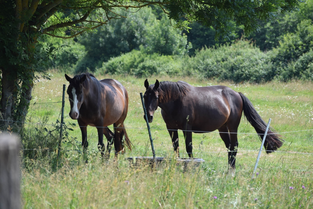 | Dire merci | Quelques nouvelles palpitantes ! Avec des photos vreuuuument de qualité. Les deux affreux ont cicatrisé impeccablement, tout le monde est ensemble et pour le coup, les grosses chaleurs ont été une aide. Même Messidor a arrêté de casser les co*illes aux autres, faisait vraiment trop chaud Vu qu'ils passent une grosse partie de la journée sous l'abri, je leur ai remis du foin en filet. Les poulains adorent Messidor, le pignouf en chef, s'amusait à le prendre avec les dents pour l'envoyer dans la tête des autres ou se battait avec, j'ai fini par le suspendre à mi-hauteur. C'était sans compter sur Maxou, qui a du mal avec les concepts un peu compliqués, qui passe l'encolure dedans, avance, reste coincé et ne comprend pas donc il ne bouge plus Et qui chouine parce que les autres partent en patûre. Bref, mes parents vont le faire reculer pour le décoincer plusieurs fois par jour, ils sont ravis. Le gros va impeccablement bien, mais Idée m'a sorti un ulcère cornéen de l'espace à 4 jours de mon départ en vacances. Je suis déjà en congés ça tombe bien, parce que j'ai mis la gomme avec ma véto et qu'on est sur un traitement toutes les deux heures. Si ça ne s'améliore pas, j'annulerais mon départ mais ça me ferait bien ch*er, un an que je ne suis pas partie On va dire que c'est plus confortable maintenant que j'ai la possibilité de dormir sur place confortablement Enfin, dormir toutes les deux heures quoi. Pour des nouvelles plus fun, j'ai enfin trouvé une maison, dans le même village, avec 1 hectare 5 autour de l'habitation, des sous bois et des abris en dur. La terre est sablonneuse, donc je les prendrais l'hiver. Ya quelques travaux de toiture à faire et faut clôturer mais avec un peu de gomme, ils seront sur place printemps prochain !Et maintenant, deux photos hyper intéressantes : ils sont gras comme des loches alors ça brille au soleil, forcément. Starring le piège à poulain comtois. ![]() ![]() J'essaierais d'en prendre ce soir à la fraîche. ![]() |