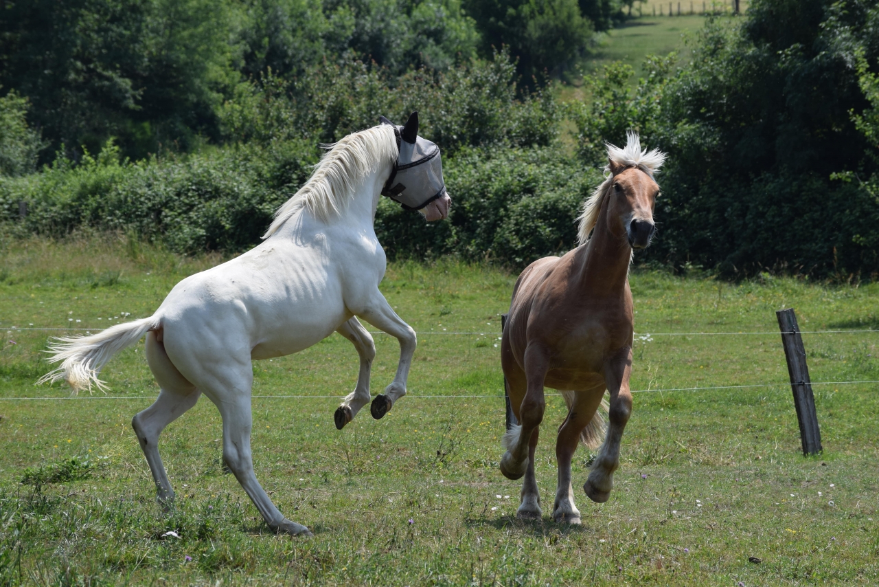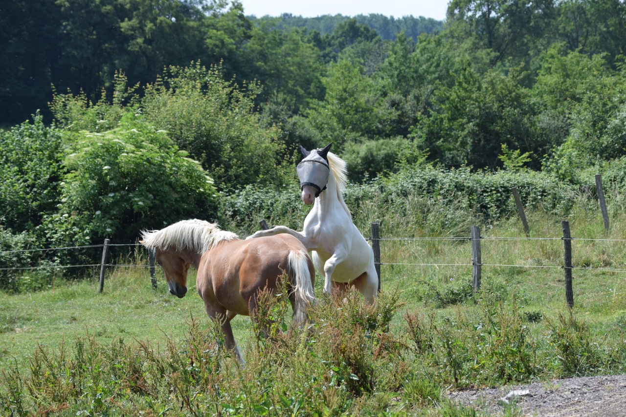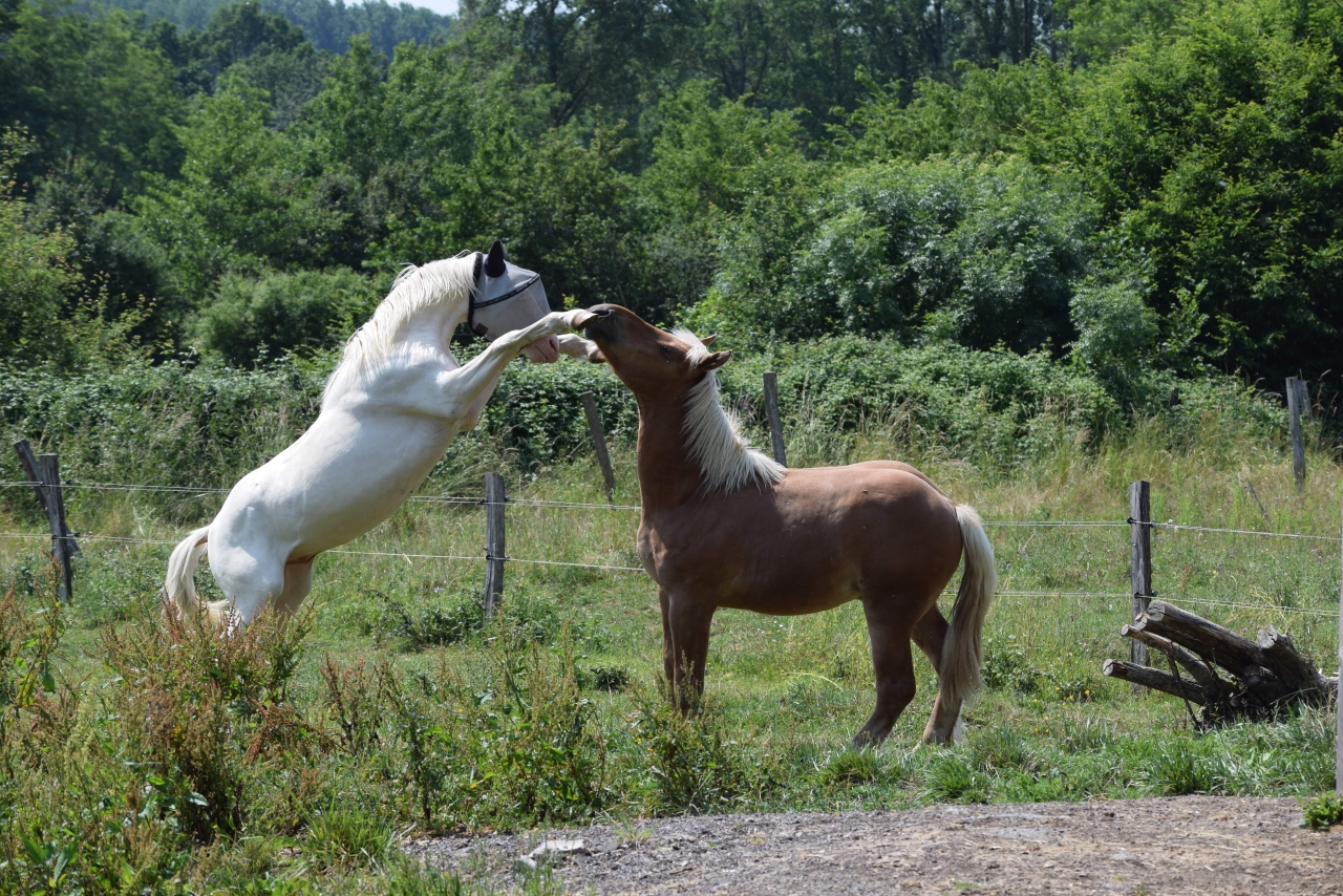 | Dire merci | takhan Je suis contente que Maxou lui dise merde, oui ! Il est chiant mais chiant Bon après il a compris qu'il avait le physique pour lui, il lui met des gros coups de fesses pour l'envoyer plus loin Ils pioncent ensemble sous l'abri, ça va le faire. Pour Messidor, les mouches n'ont pas dû aider mais ça s'est refermé trop vite et il avait de gros cordons. J'ai eu la propriétaire de son demi frère au téléphone hier, Maïdan a exactement le même problème. Ca granule, ça coule, ça fait des œdèmes bien énervés. Je lui blindais les cuisses d'émouchine gel + butox et ça n'a pas empêché qu'elles viennent dessus. Je surveille matin et soir, il a eu sa dernière injection hier matin. J'espère sincèrement que c'est dernière nous, il est gentil comme tout mais les soins locaux + piqûres il en avait ras le bol. Et moi aussi. Plus jamais sheytana Mais oui je n'en reviens pas, il revient de loin. Bon matos Nikon |
