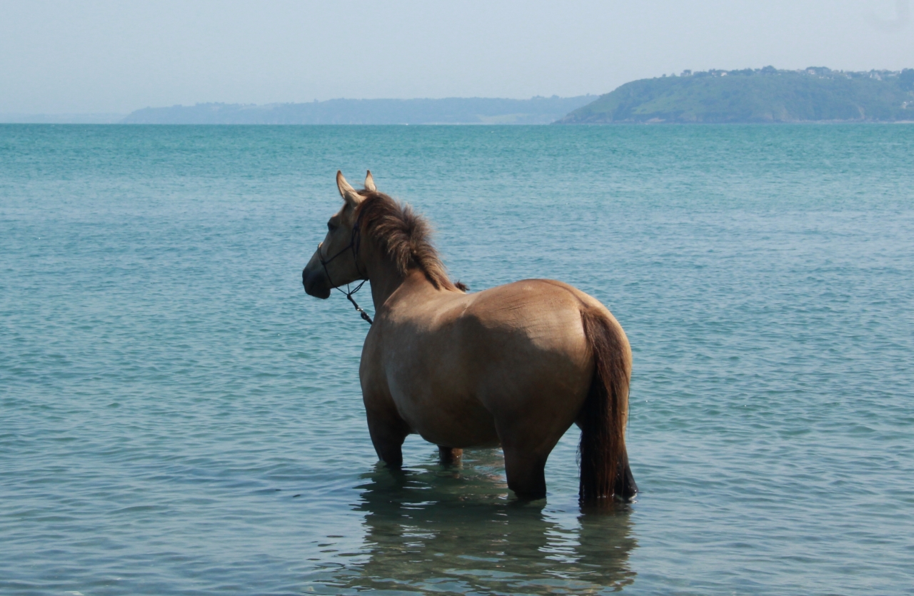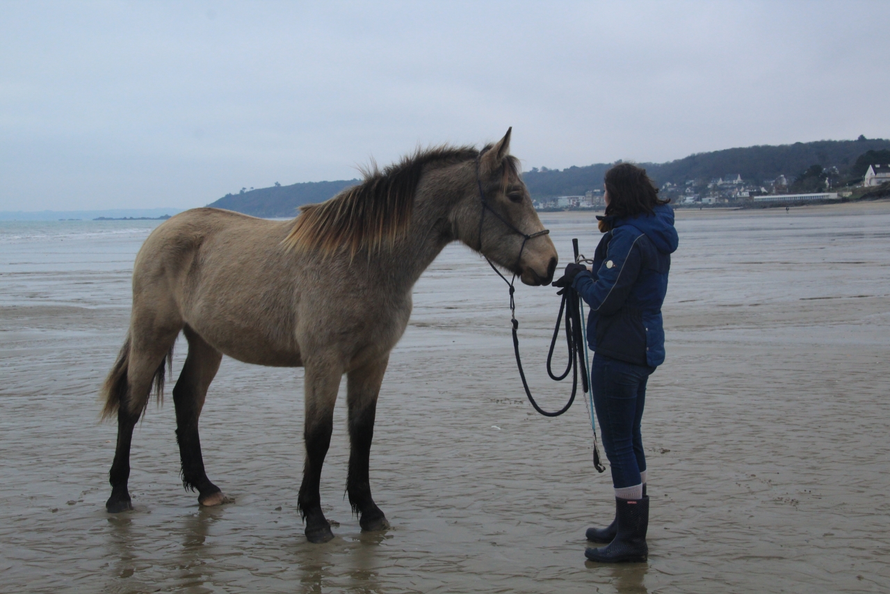 | Dire merci | On termine la mise à jour avec cette première moitié de 2023 : Jamais 2 sans 3, on reprend le challenge de l'hiver avec l'equifeel virtuel. Cette année on reste en jeunes chevaux mais on a bien progressé dans le travail à pied et la connexion alors on tente un maximum les gros contrats : parcours d'embuches, slaloms sur le cercle, huit de chiffre, 1/2 tour autour des épaules et déplacement latéral sur une barre, le tout en liberté. Ce qui nous a aussi donné quelques moments de grands n'importe quoi ![]() ![]() ![]() En mars j'ai voulu toiser la bestiole, sachant qu'en faisant la moyenne de la taille des parents je tombais sur une toise de 162-163cm ( déjà atteinte à l'automne...). Verdict : 167cm. Avec les fesses toujours plus hautes et pas de garrot sorti. Vivement les balades en forêt, les branches basses seront très basses ! Mi-mai nous avons eu un stage TAP / équifeel aux écuries, l'occasion de réviser un peu et d'apprendre 2-3 nouvelles choses (déplacements latéraux par aspiration et arrêts sur le cercle sans me faire face notamment). C'est un plaisir de travailler avec cette jument, elle apprend à une vitesse de fou ![]() En juin sortie plage pour son anniversaire, j'ai voulu tenter la baignade mais marée haute avec les galets en dessous ce n'était pas le top. A refaire ! ![]() La suite au prochain épisode ! ![]() |