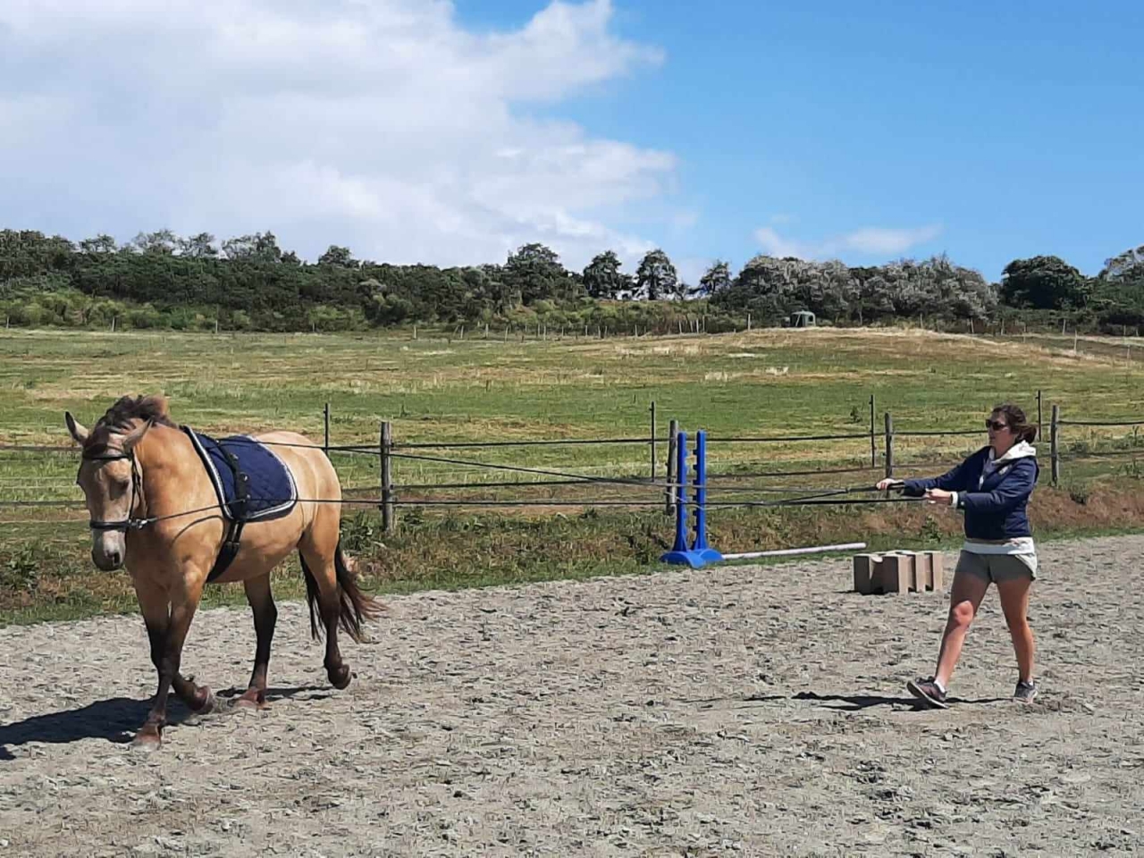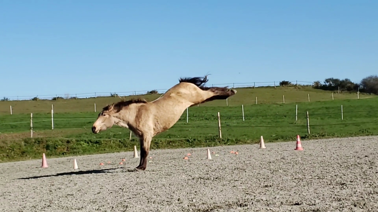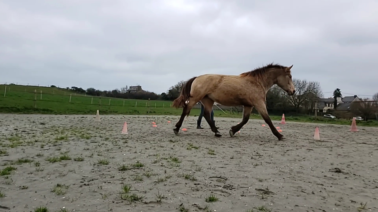 | Dire merci | je n'ai pas un gros niveau en LR donc on ne fera pas de folies mais je les prends vraiment comme un outil d'apprentissage : découverte du contact, du travail en cercle avec un semblant d'incurvation, la faire devenir plus autonome (au premier passage de la bâche elle m'a fait un stop devant alors qu'elle la passe en main ou en liberté sans regarder si je suis à côté). Quand j'aurais introduit la marche derrière elle on ira faire un peu d'extérieur. L'objectif c'est qu'elle ai tout vu / tout fait à pied avant que je pose mes fesses dessus l'année prochaine ![]() |