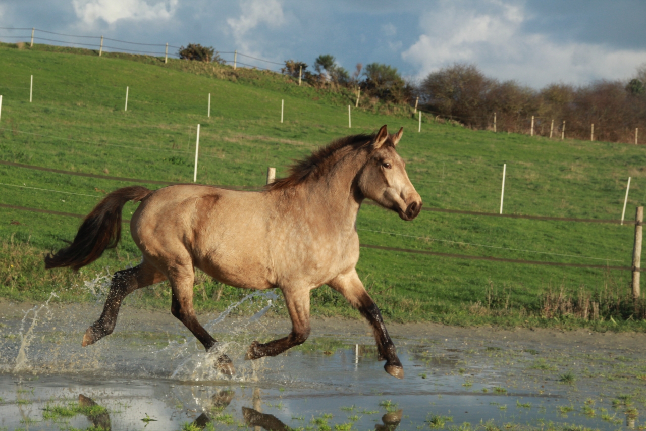 | Dire merci | Bonne année à tous pour commencer !! Nouvelle année qui veut dire que Poulichette prend 4 ans ! Et qui dit nouvelle année dit nouveaux objectifs. Cette année, je pose mes fesses là-haut ! Pour ça on va continuer ce qui a déjà été fait : - travailler en longe pour coder les demandes - faire des longues-rênes pour s'habituer au contact et la rendre autonome dans ses déplacements - travail à l'épaule pour s'habituer au contact et au demandes sur les rênes - désensibiliser au montoir, pour l'instant j'en suis à m'avachir dessus, grattouiller les flancs de l'autre côté et la croupe et à sautiller sur le montoir en prenant appui sur son dos - sortir en main pour voir du pays, sorties en dextre à prévoir - travailler au sol et en liberté - et surtout s'AMUSER !! ![]() |