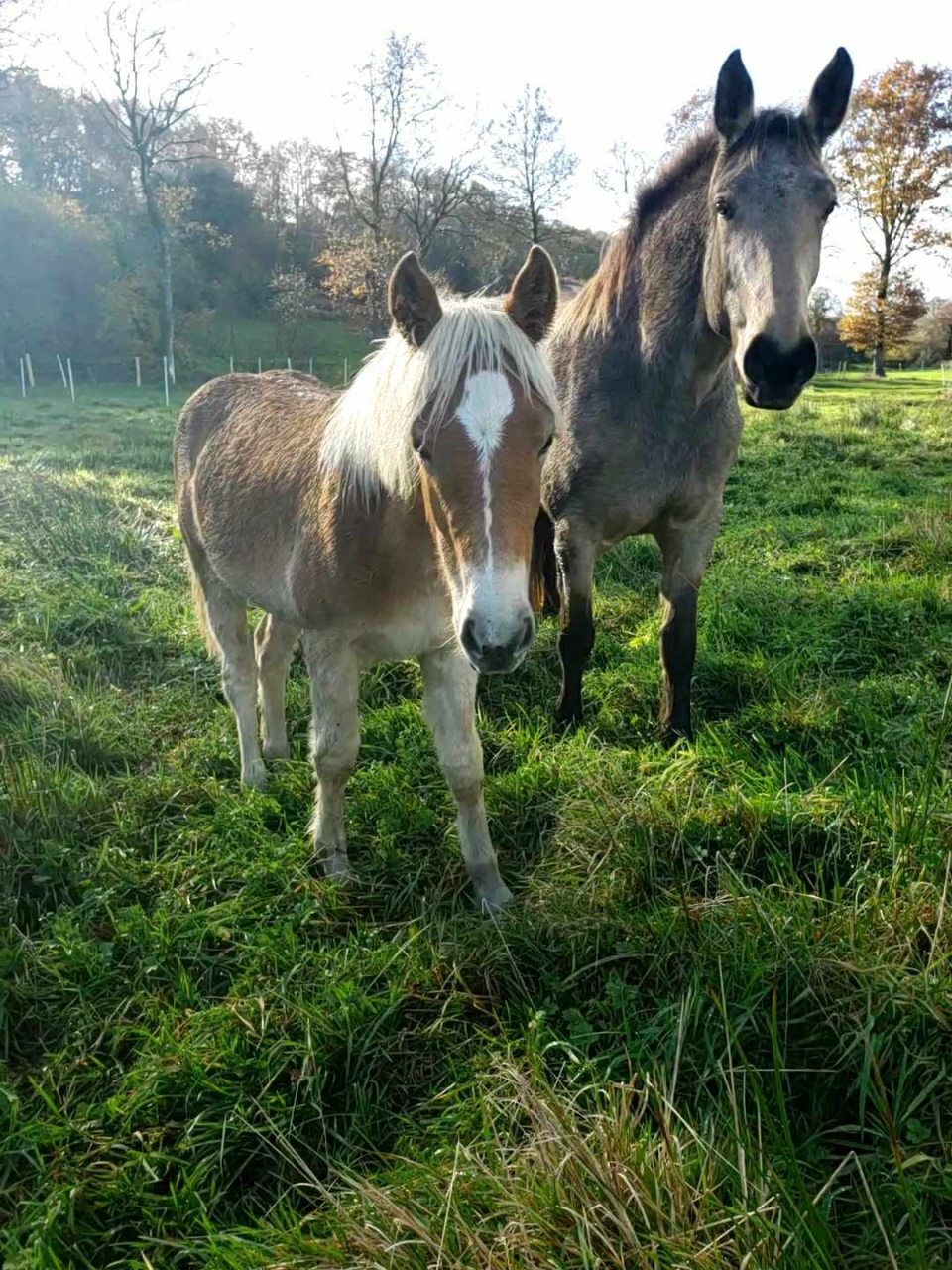 | Dire merci | Bonjour bonjour !! Bon, ça fait un sacré bout de temps que je n'ai rien posté ici ! Pourtant il s'est passé pas mal de choses : - Ode (dite "la Petite" est arrivée, d'abord aux écuries où Kyrielle était en pension- puis une semaine après les juments sont arrivées toutes les deux à la maison ![]() Après un premier week-end avec une météo parfaite, nous avons enchainé 5 jours après avec de la tempête, de la neige (le 20 novembre... annonce d'un hiver de crotte apparemment !) puis rapidement de la pluie, de la pluie, de la pluie... L'avantage c'est que ça permet de voir les contraintes du terrain ! Je découvre donc la joie de me lever à 6h30 le matin pour aller ramasser les crottins des miss (c'est fou ce que ça chie un cheval !!!), et surtout de voir mes juments sous mes fenêtres en ouvrant les volets ! Les filles s'entendent bien ! ![]() Kyrielle reprend le travail très tranquillement, j'ai beau avoir la carrière à la maison, entre le temps de chiotte et bébé de 1 an, je n'ai pas toujours le temps et / ou la motivation ! Je m'étais tout de même inscrite à l'équifeel virtuel Caval'Go, avec les deux, en épreuve à pied et montée avec Kyrielle, et en épreuve poulain avec la Petite. Ce qui m'a permis de confirmer le caractère du poney : rentre dedans et très expressive pour dire qu'elle n'est pas contente ! Mais sinon elle est mignonne ! ![]() Je nous ai trouvé une monitrice indépendante pour nous donner un cadre dans le travail monté avec Kyrielle, 1er cours prévu samedi matin ! ![]() |