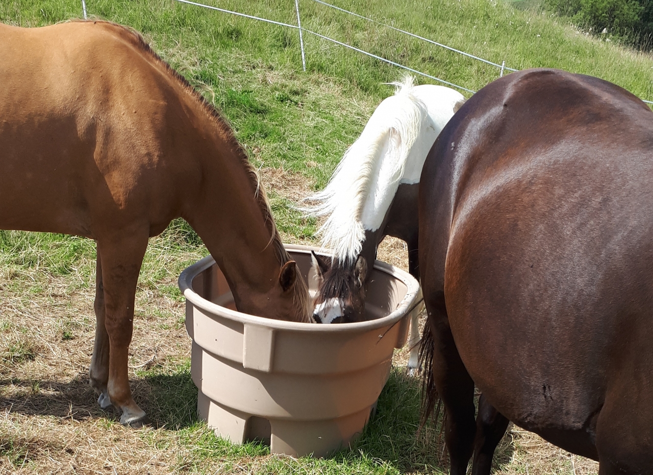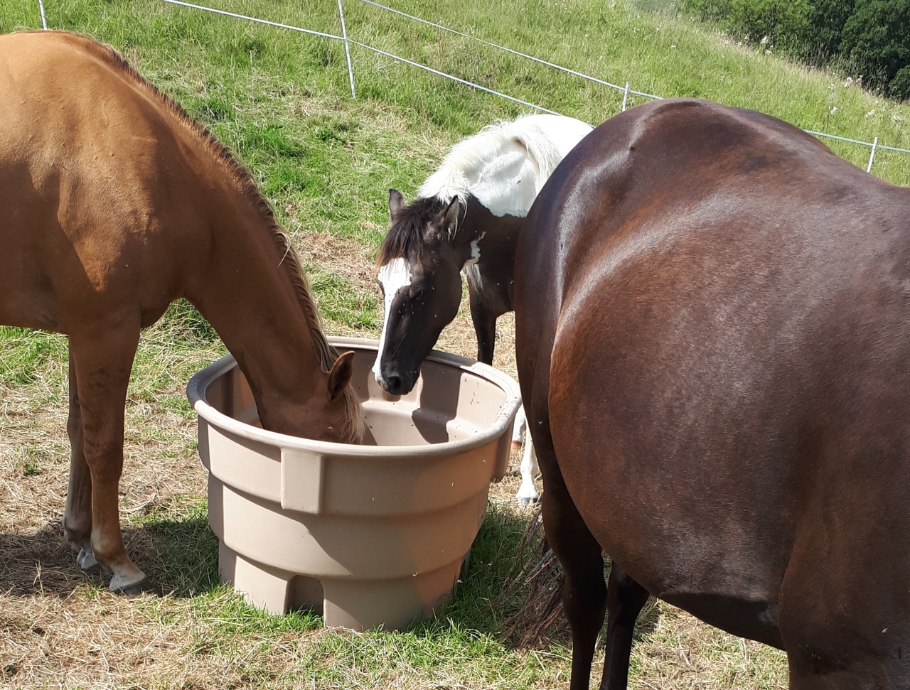 | Dire merci | Pour le moment on ne fait pas grand-chose. Ce qui est important pour moi, c'est d'avoir un groupe sympa, que tout le monde vienne avec plaisir, se laisse licoler sans problème, sorte du pré sans problème. Bon sur ce point c'est un peu trop bien acquis pour la petite : elle a compris que quand on sort du pré, il y a le chouette seau de minéraux. Du coup quand la véto et venue vacciner tout le monde, on a commencé par le hongre. Quand on l'a remis, la petite a profité de la brèche pour se faufiler telle une anguille, et hop le pif dans le seau J'ai aussi vermifugé tout le monde après avoir fait une copro à la petite, là aussi super braves. Le temps passe vite, là c'était 3 semaines après leur arrivée : ![]() |